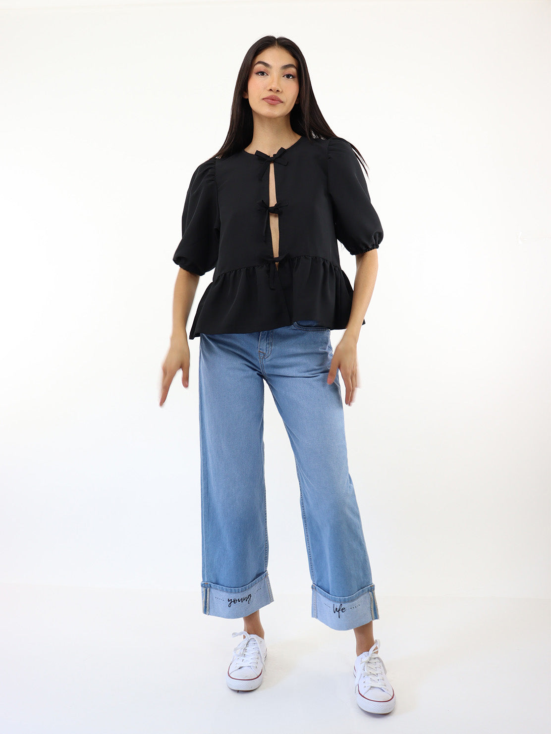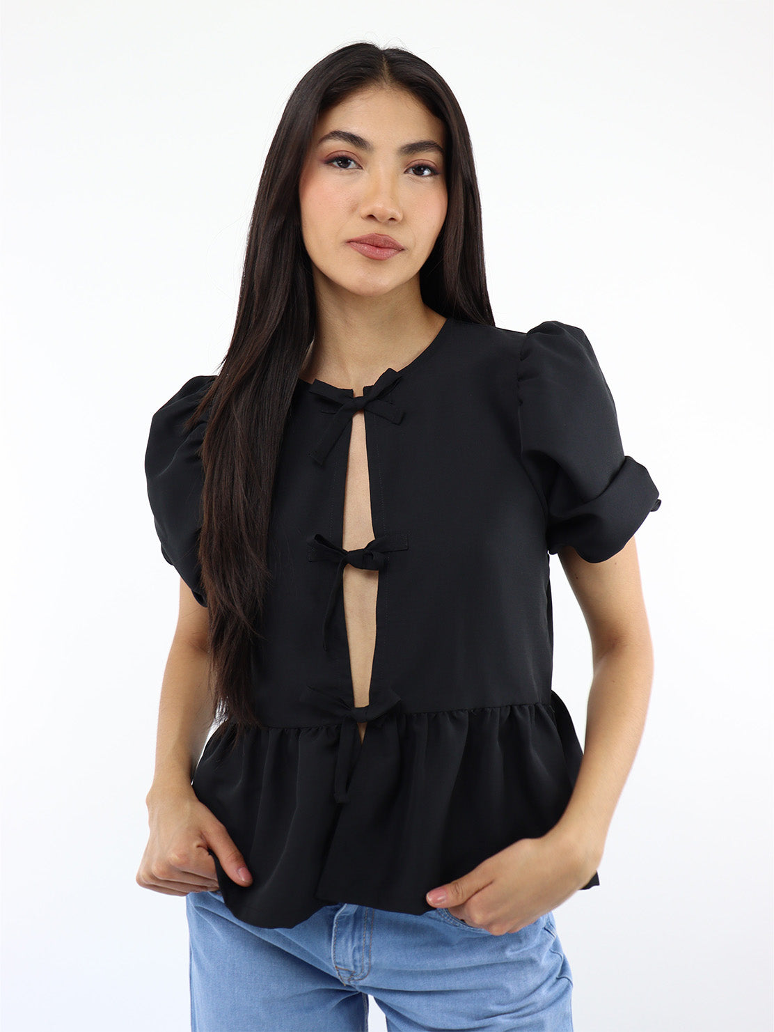 Blusa media manga de color negro