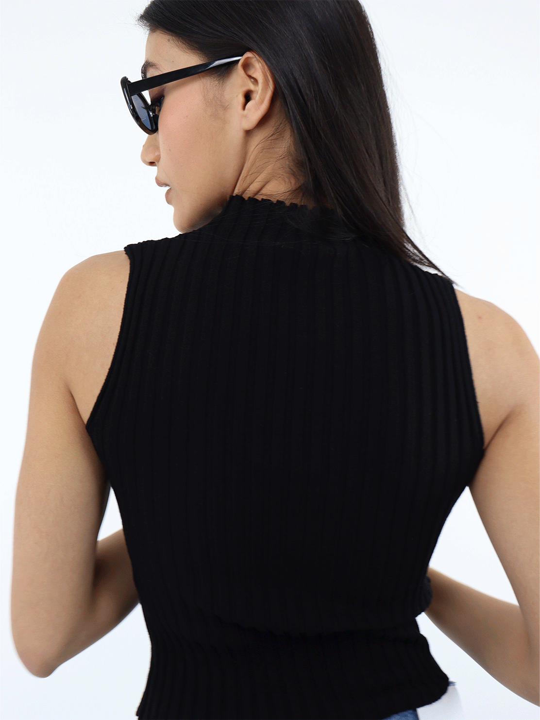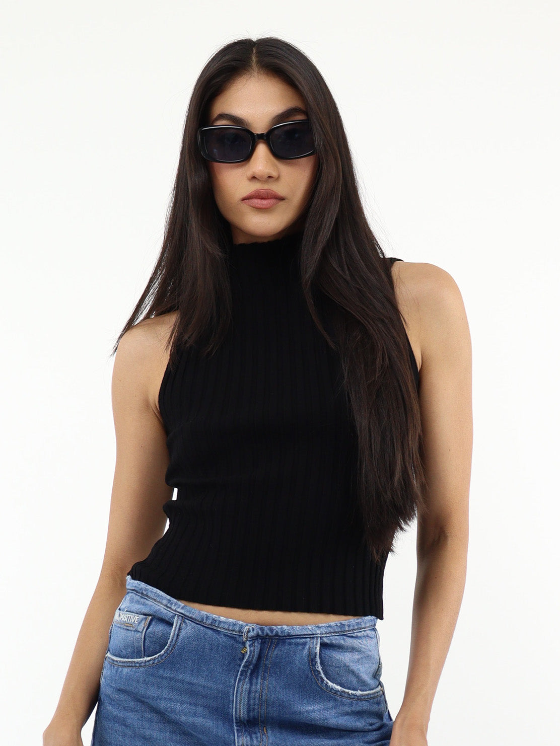 Blusa sin mangas cuello alto color negro
