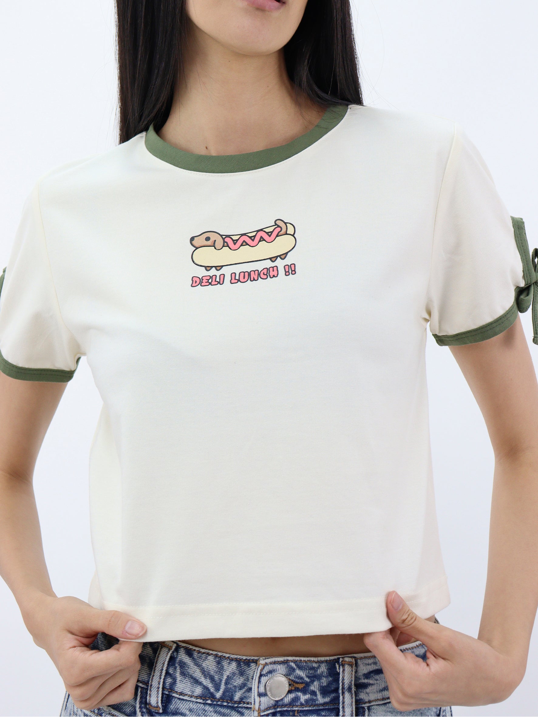 Camiseta crop con gráfico de perro salchicha
