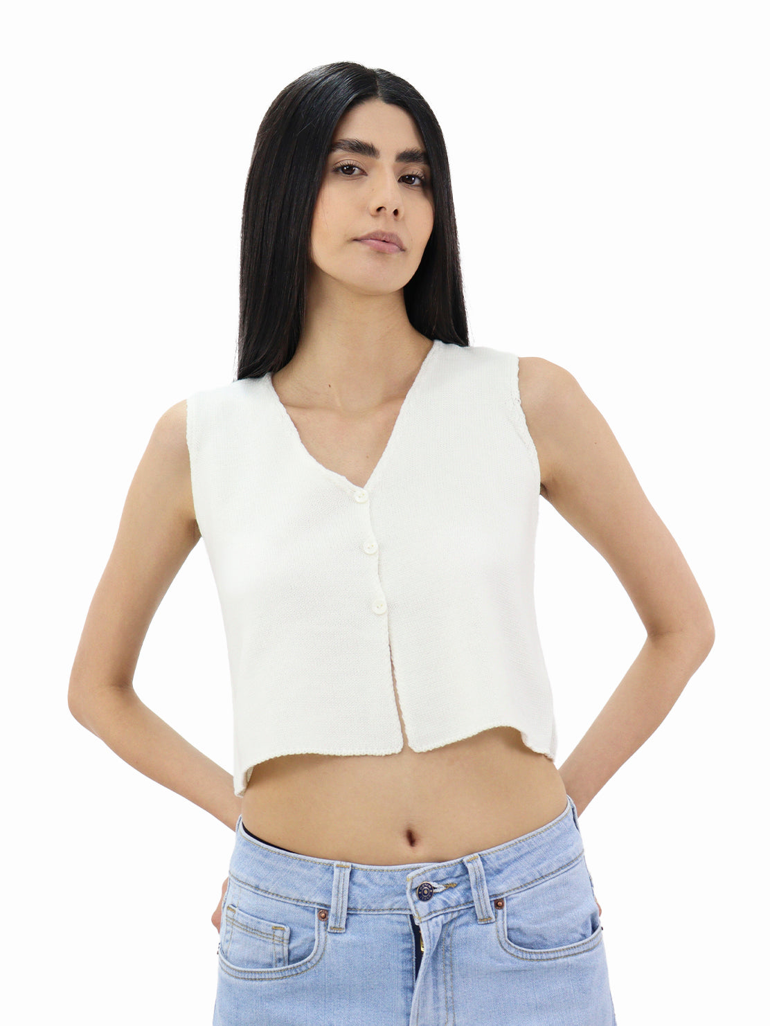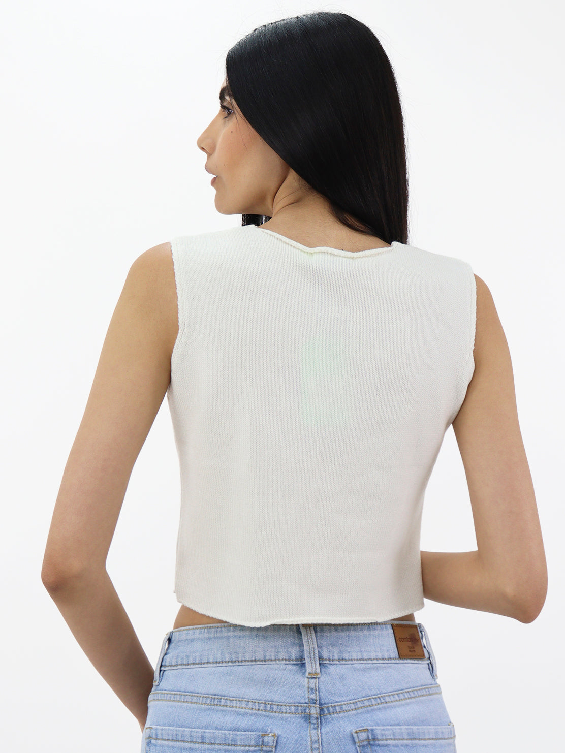 Chaleco de punto en tono hueso sin mangas de cuello en V