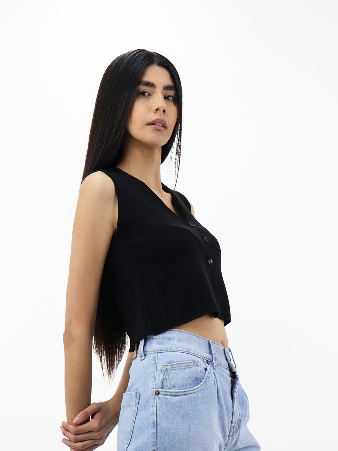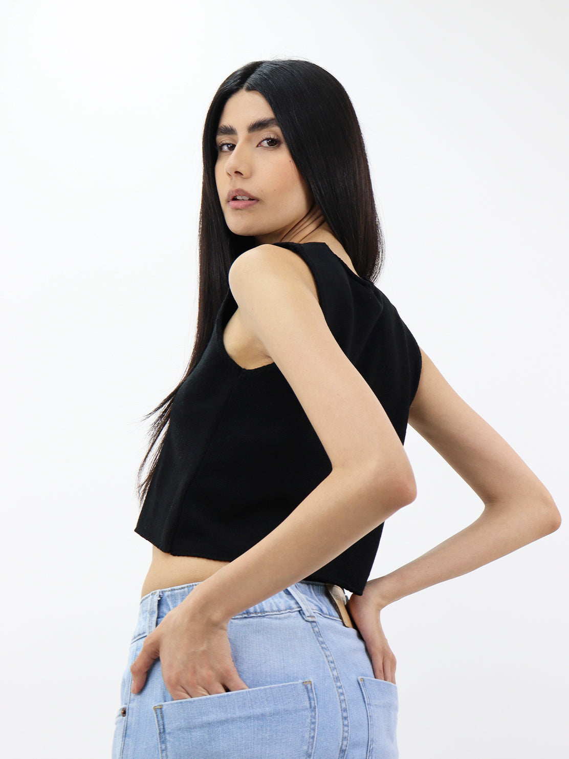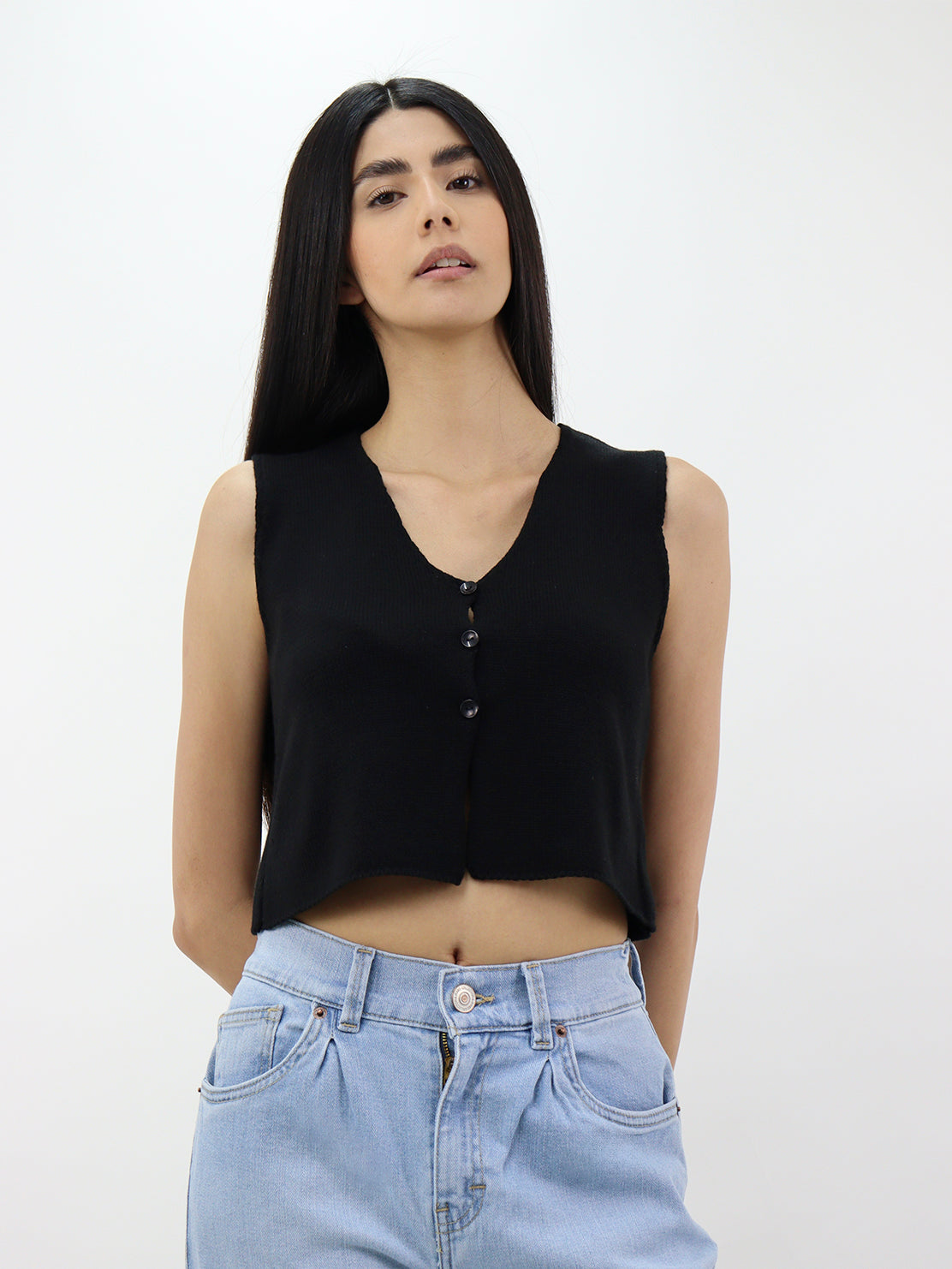 Chaleco de punto sin mangas negro de cuello en V