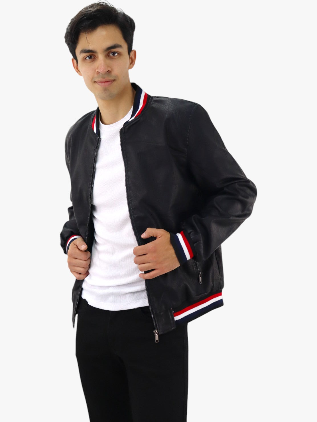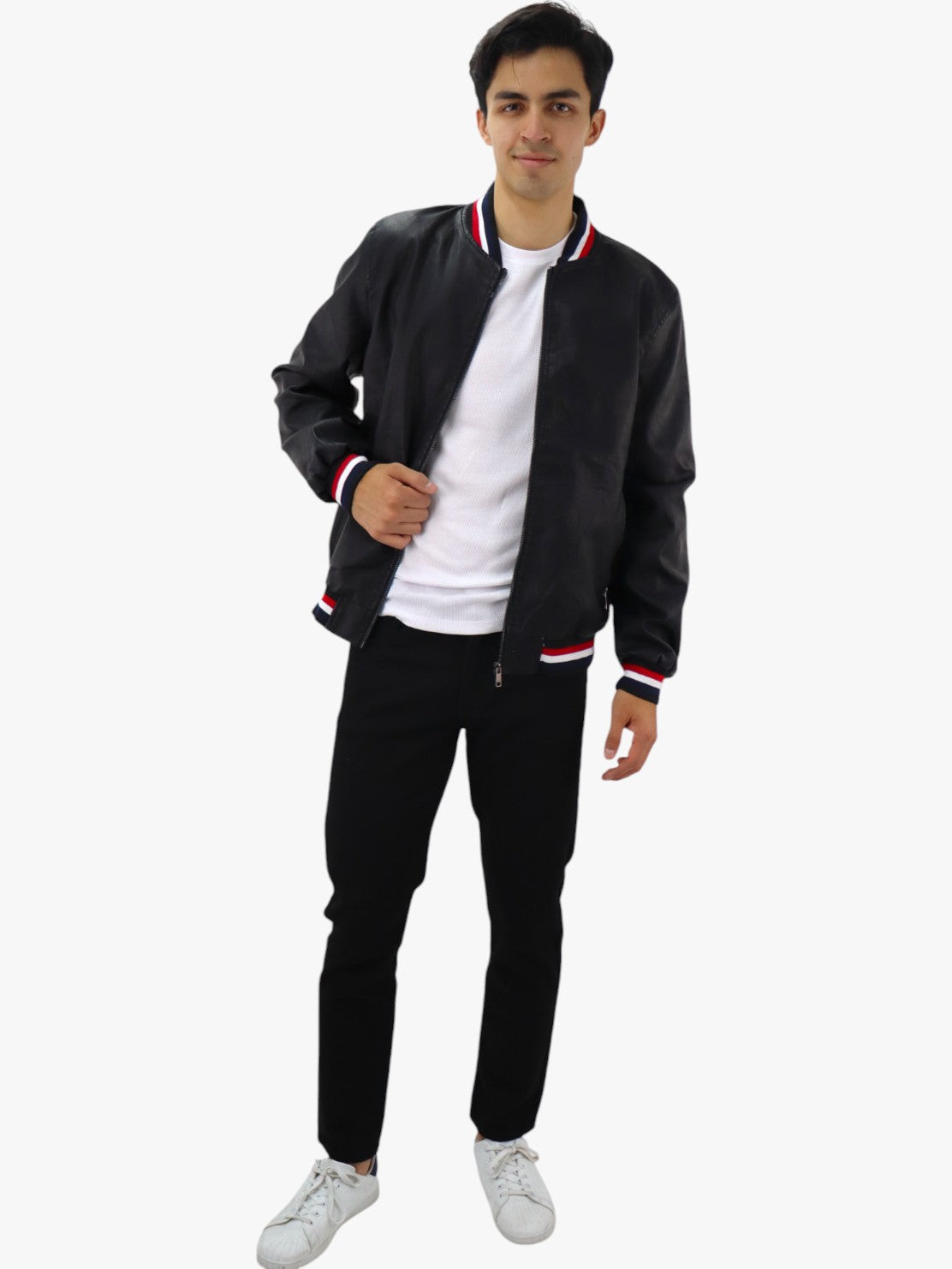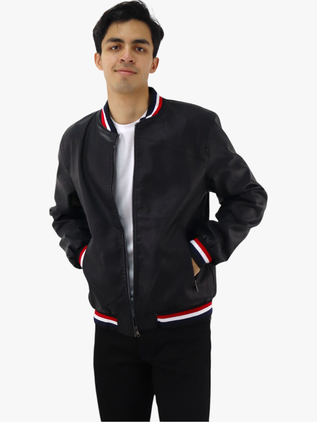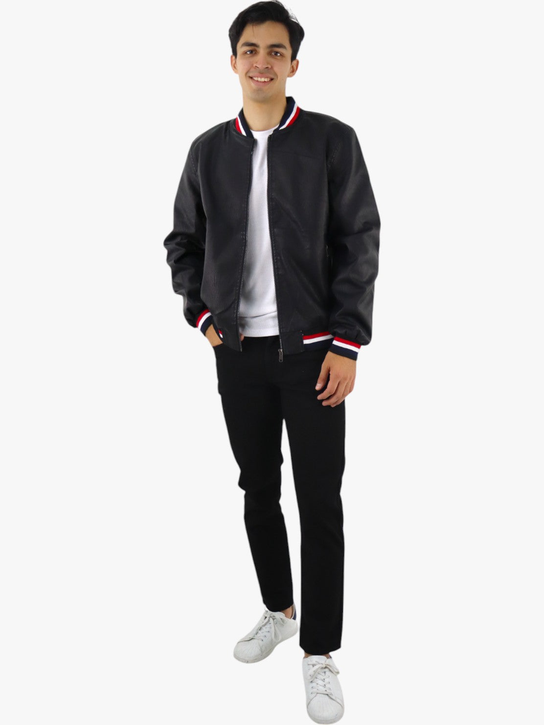 Chamarra de vinipiel color negro