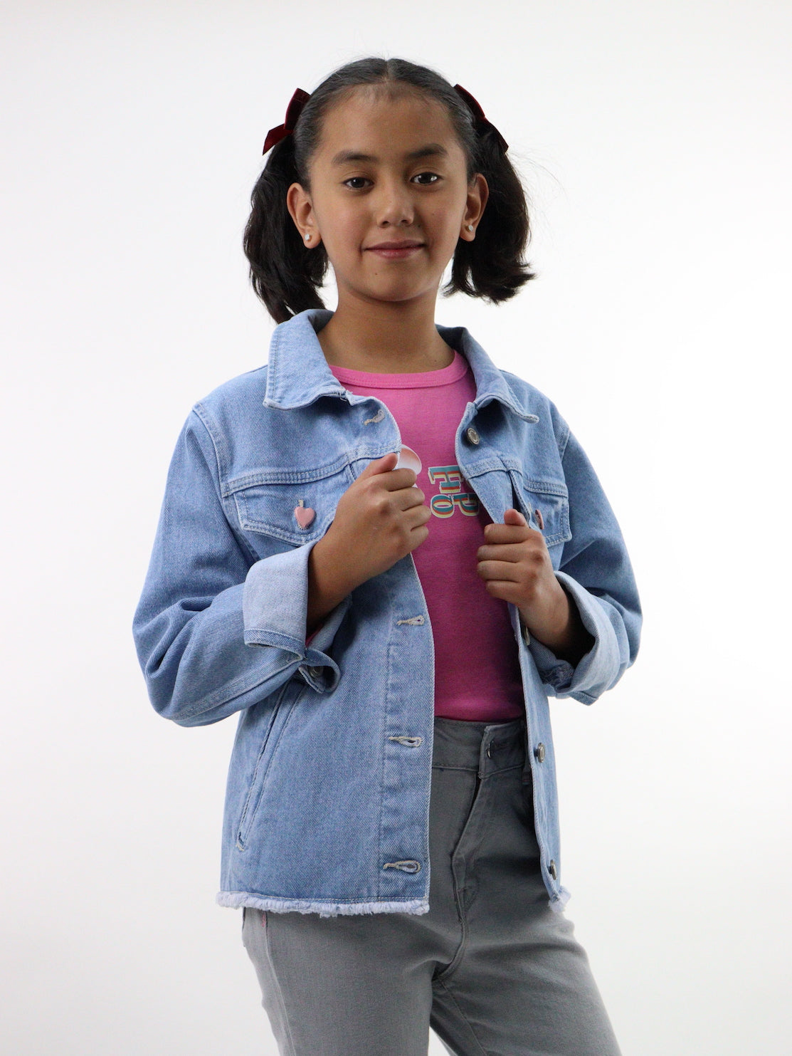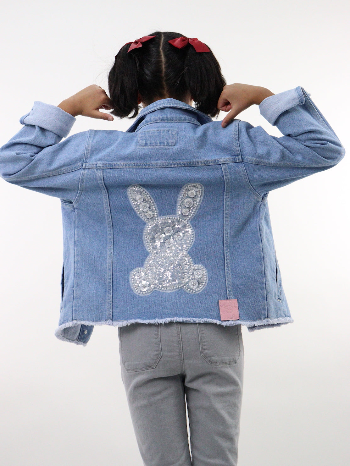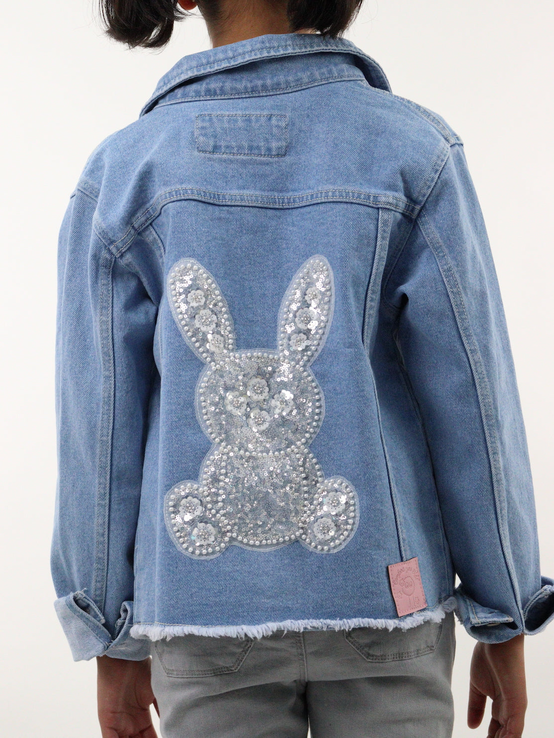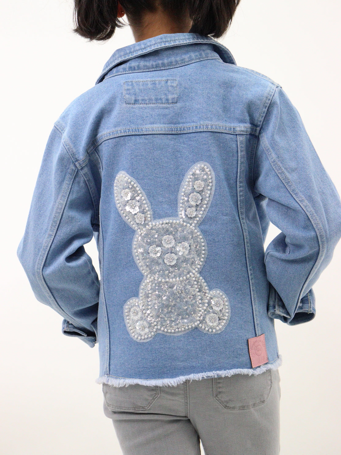 Chamarra edición especial de color azul claro con aplicación de conejo en la parte trasera