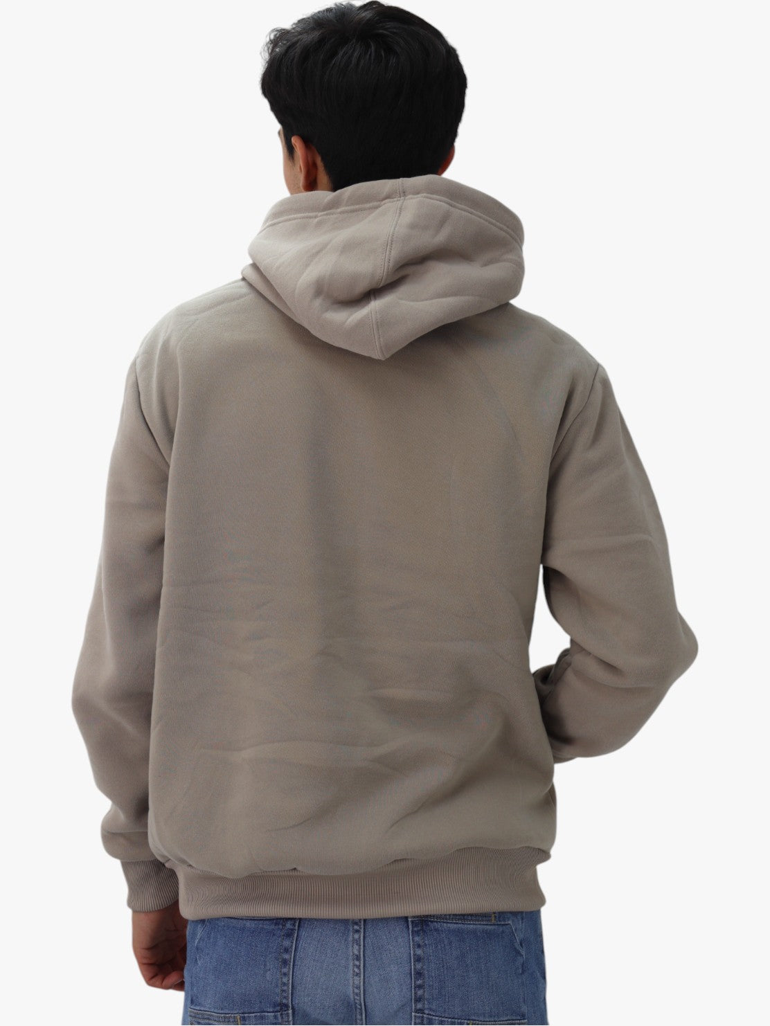Hoodie básica unisex beige claro con capucha. Cerrada con bolsillo canguro.