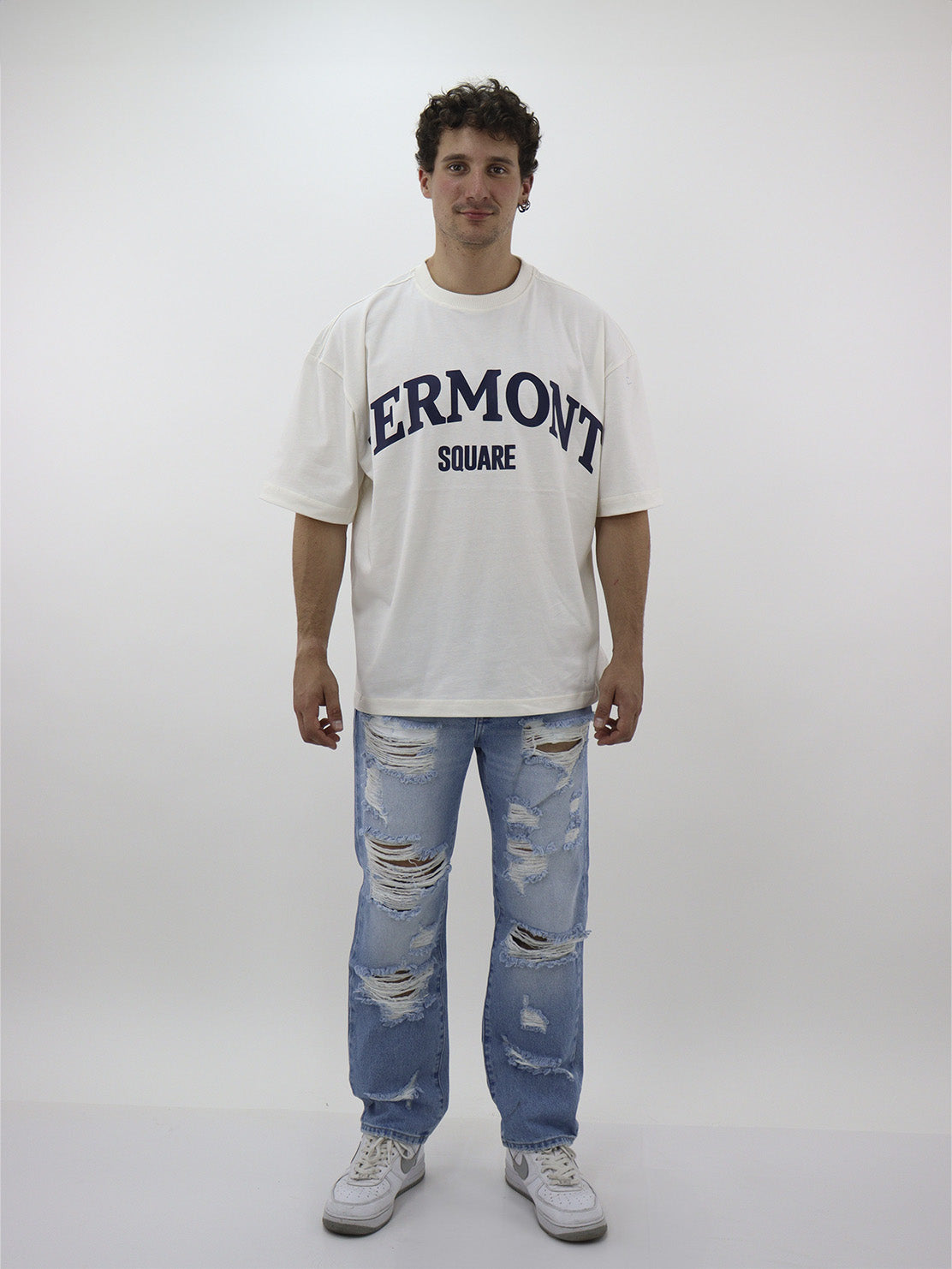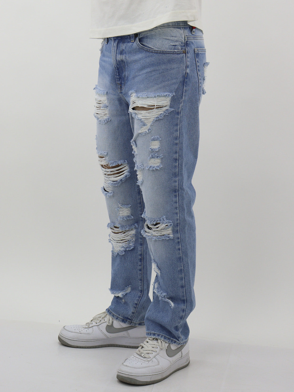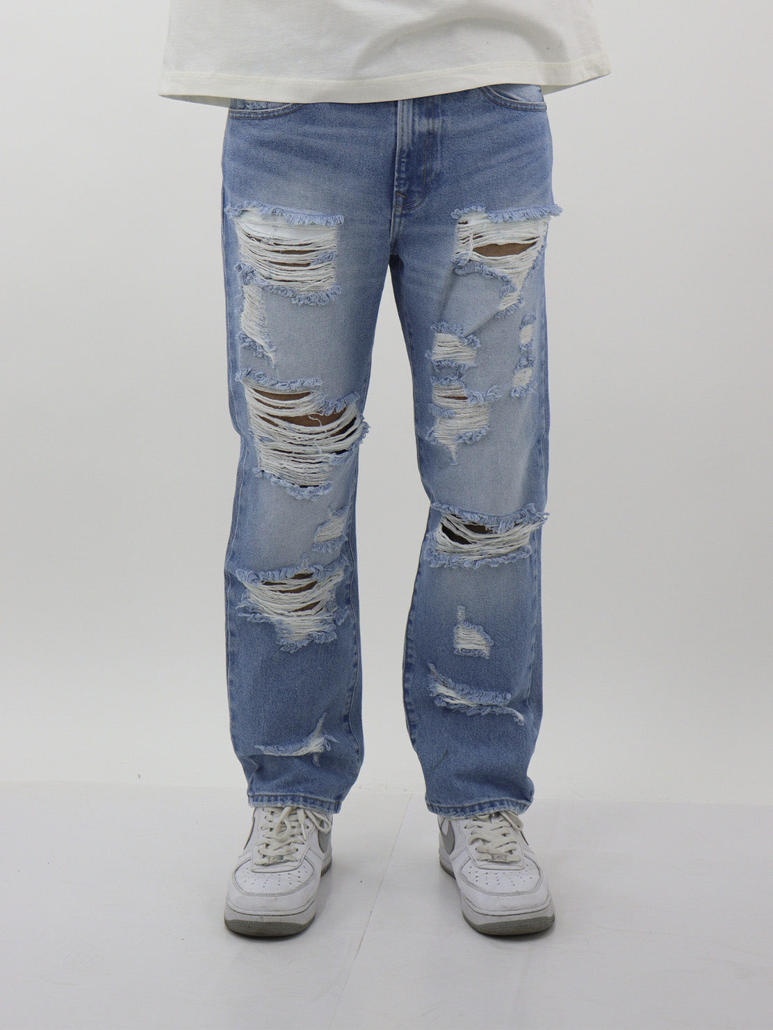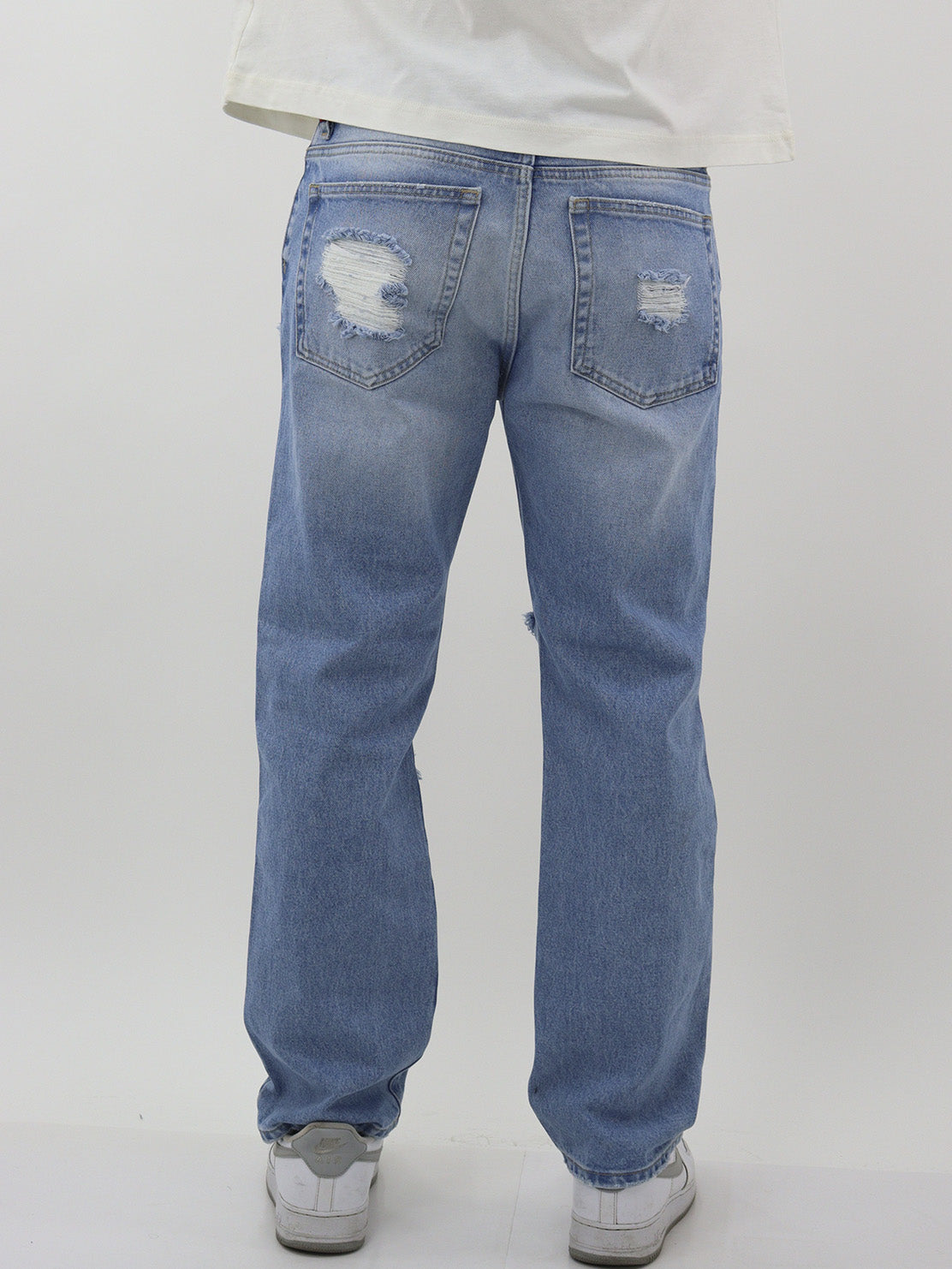 Jeans regular azul claro con destrucción