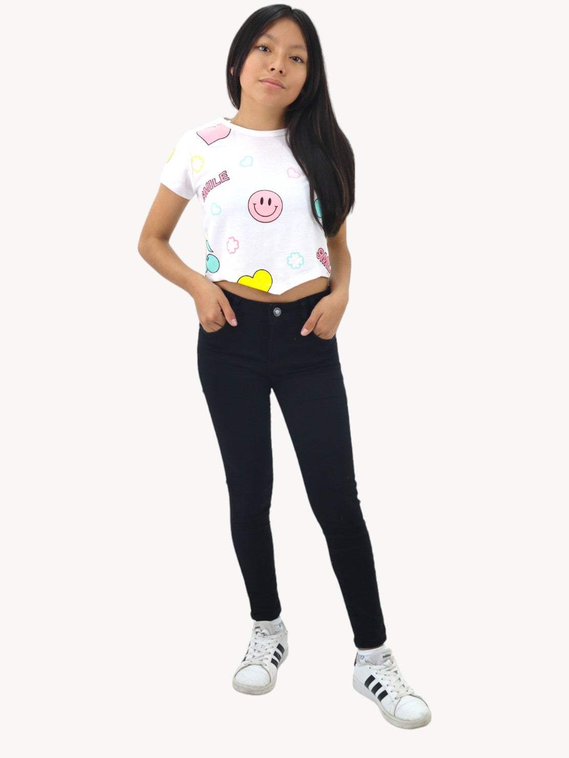 Jeans skinny de mezclilla stretch color negro, con bolsas delanteras, traseras. Cierre de botón y cremallera