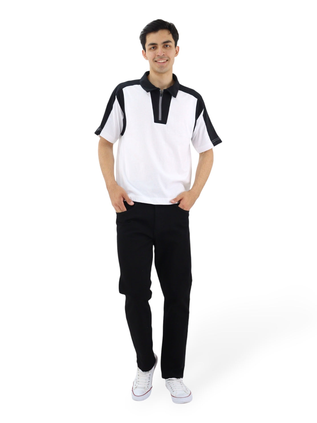 Jeans slim de talle alto, con bolsillos en la parte delantera y trasera, cierre de botón y cremallera, pierna ajustada. Lavado negro