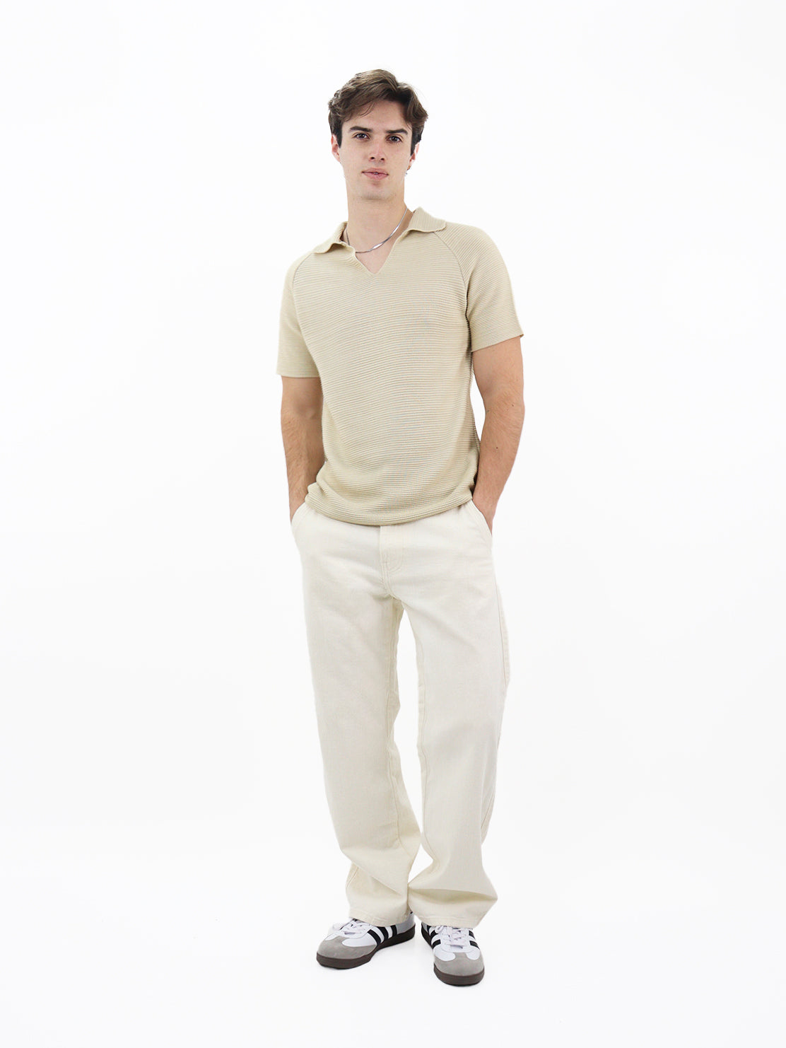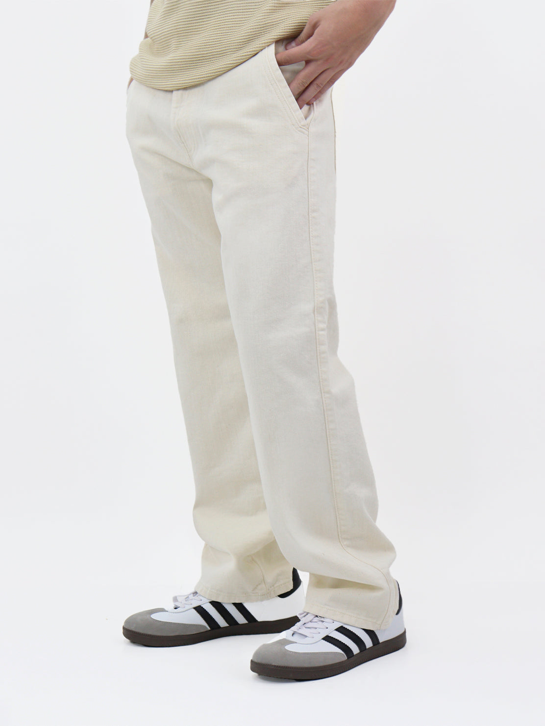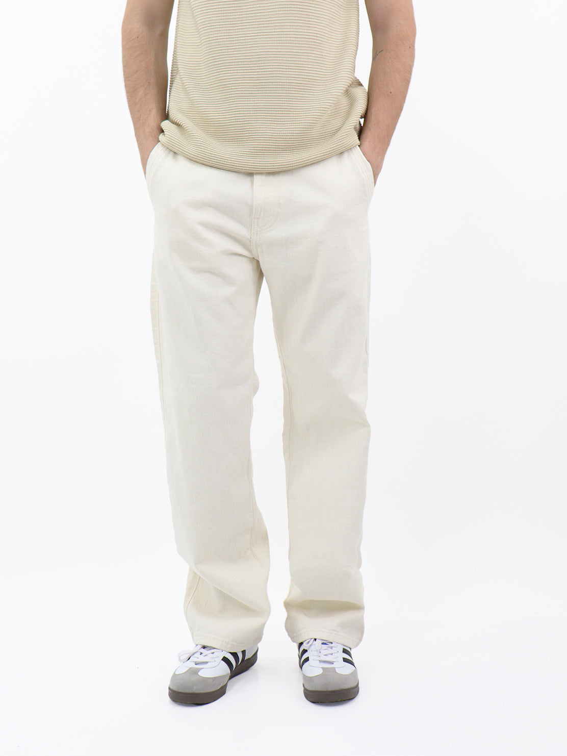Jeans wide de talle alto, lavado crudo, con bolsillos en la parte delantera y trasera, cierre de botón y cremallera y pierna recta.