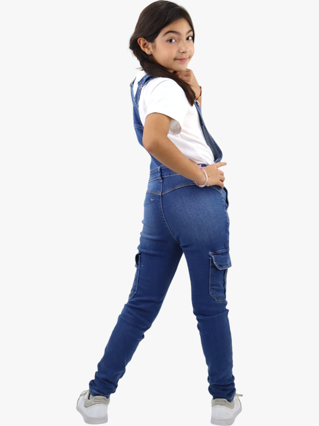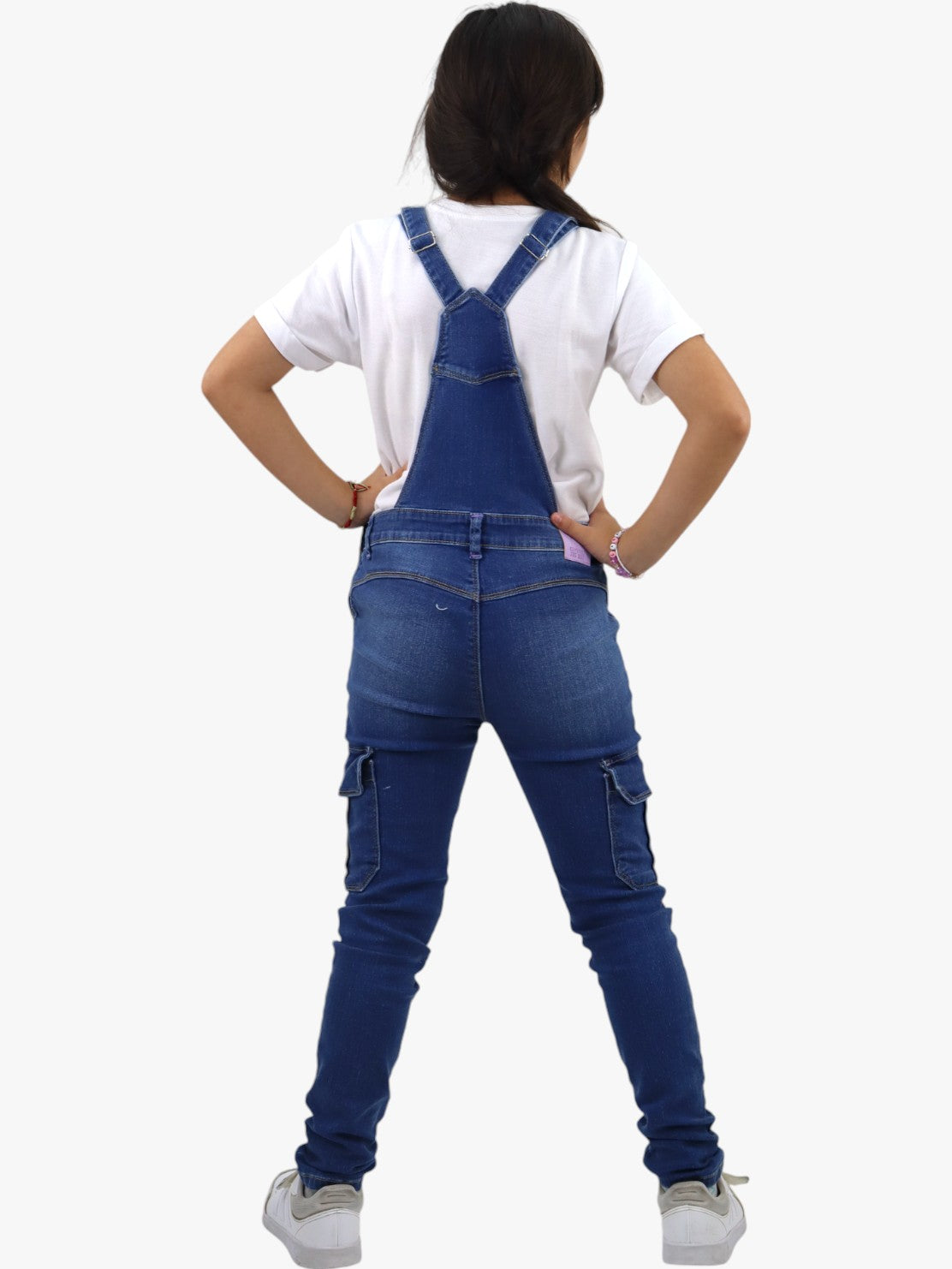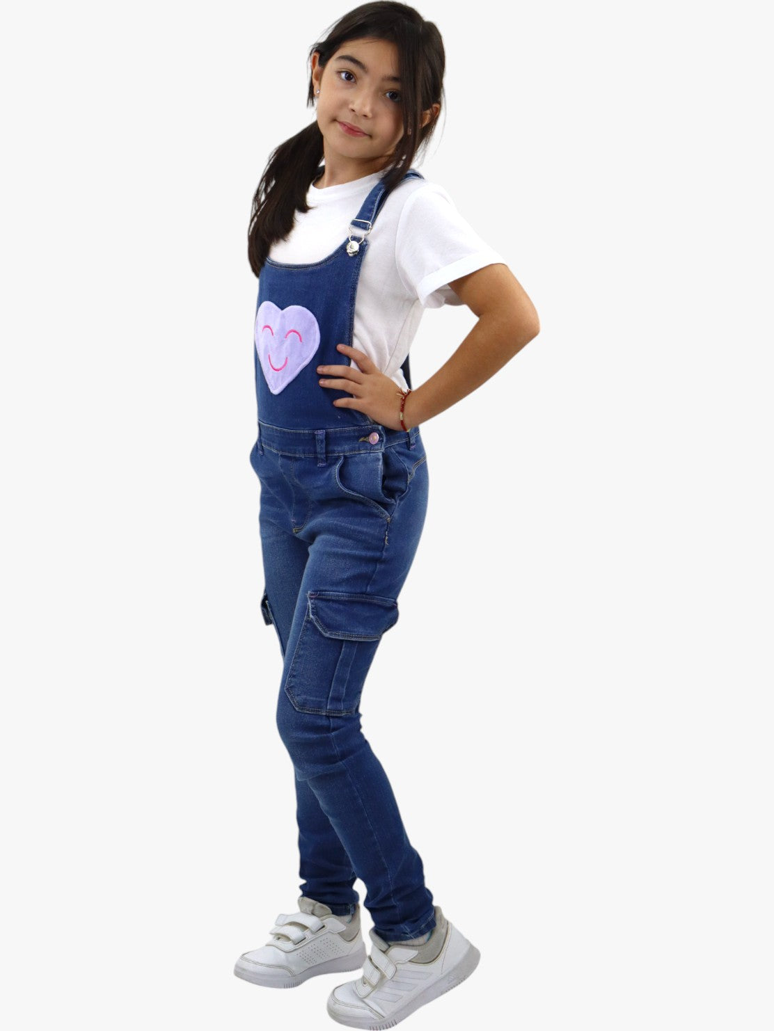 Overol cargo de color azul oscuro, con diseño en bolsa de corazón