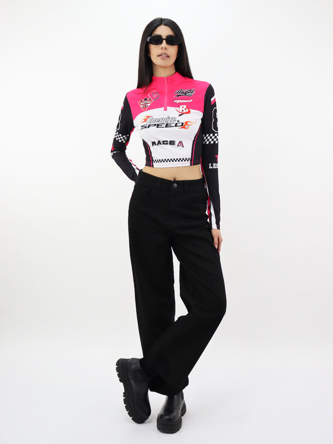 Playera crop de impresión de carreras manga larga