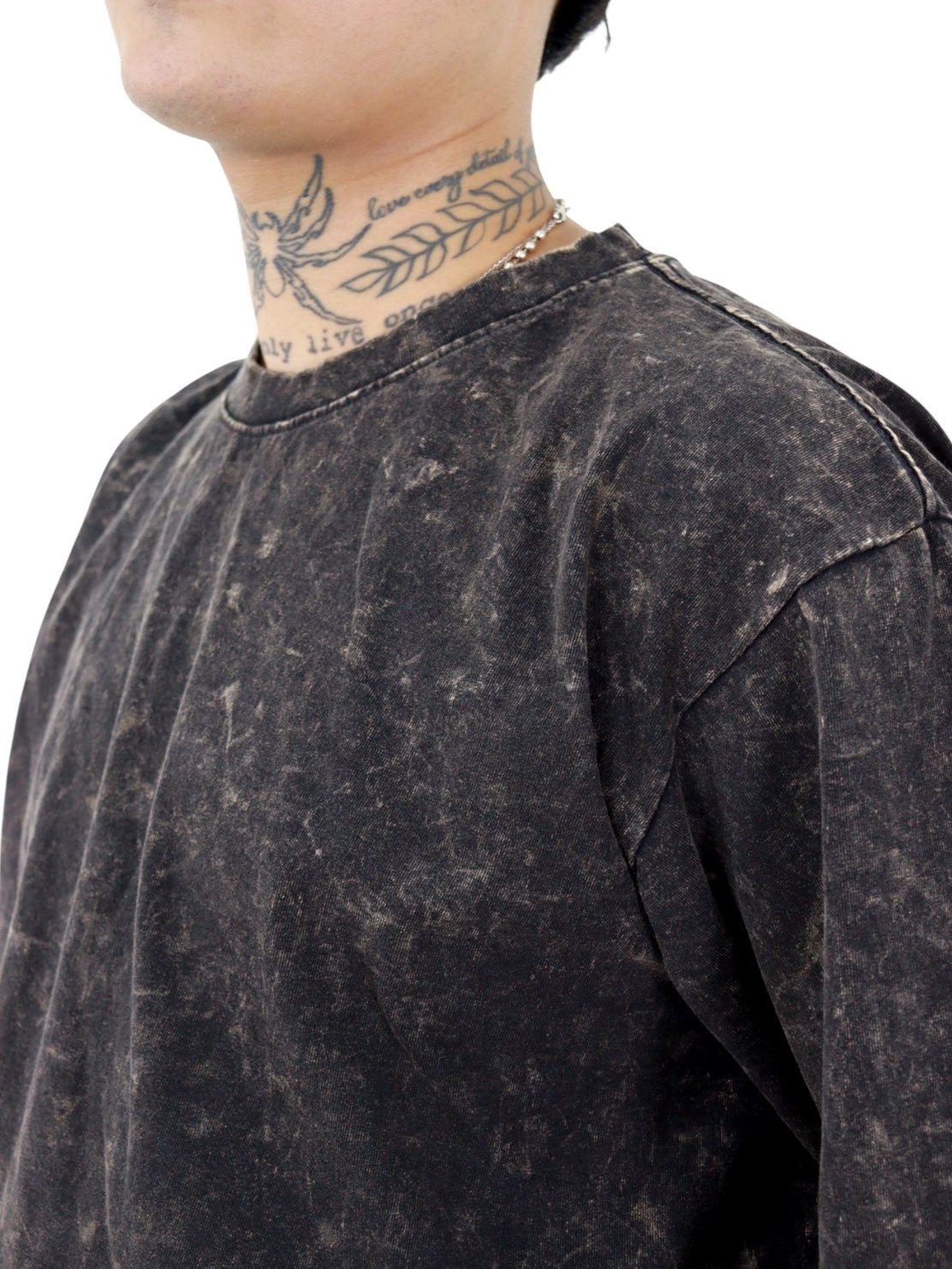 Playera manga corta de color negro efecto lavado nevado