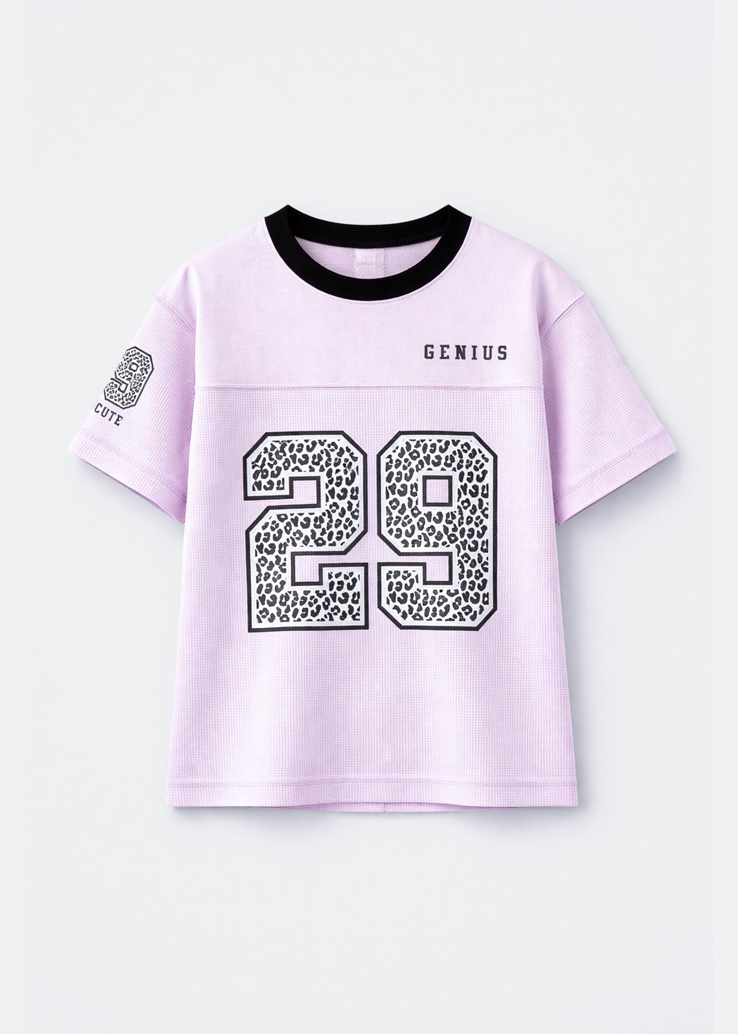 Playera manga corta de color lila con estampado