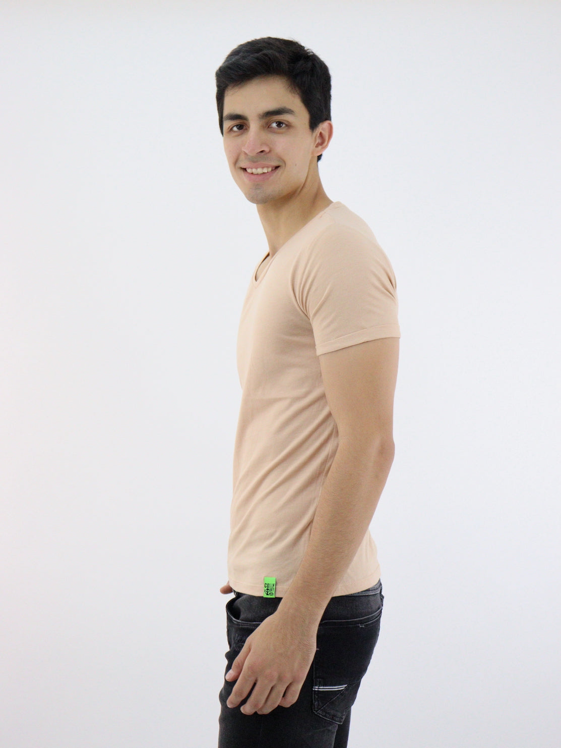 Playera manga corta de color ocre con cuello V