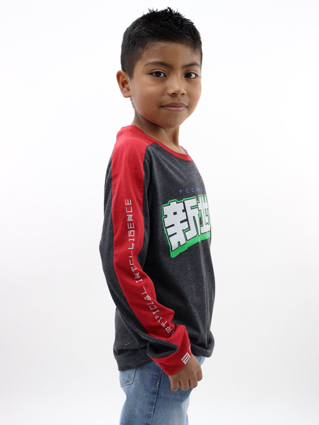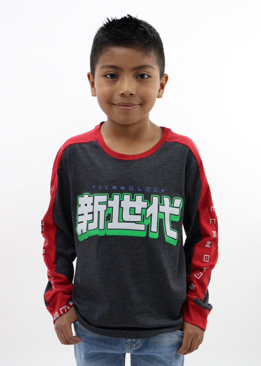 Playera manga larga de color combinado con estampado