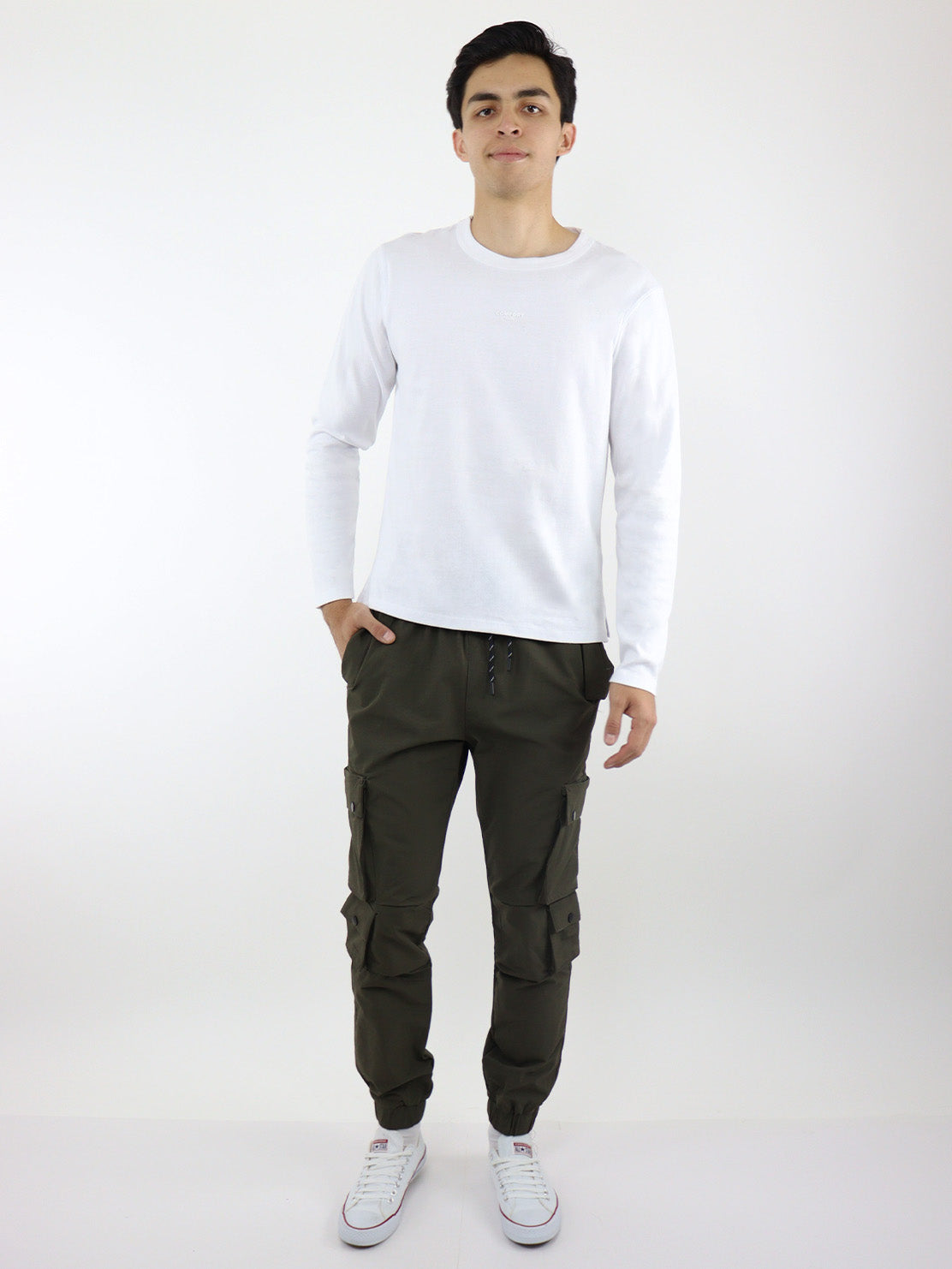Playera manga larga de tono blanco. Logo bordado en el pecho Comfort Jeans