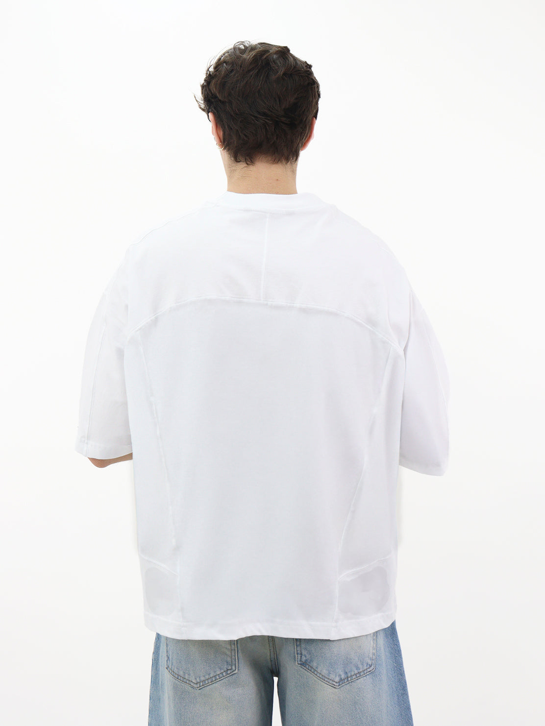 Playera oversize de color blanco, cuello redondo