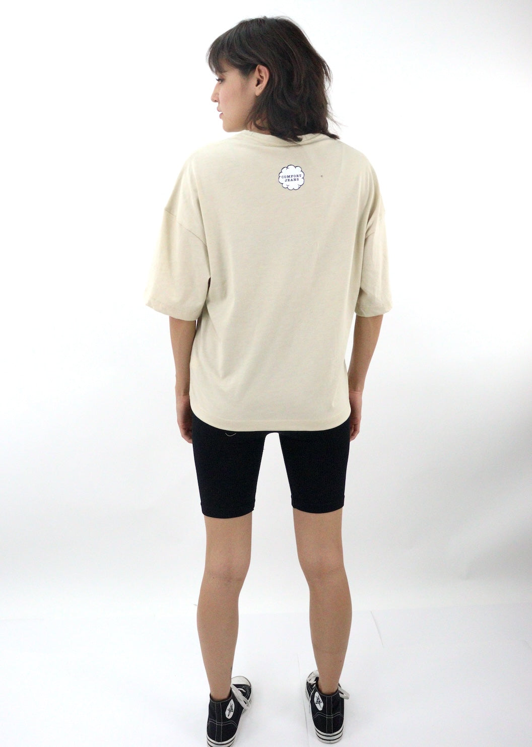 Playera oversize de color beige con estampado