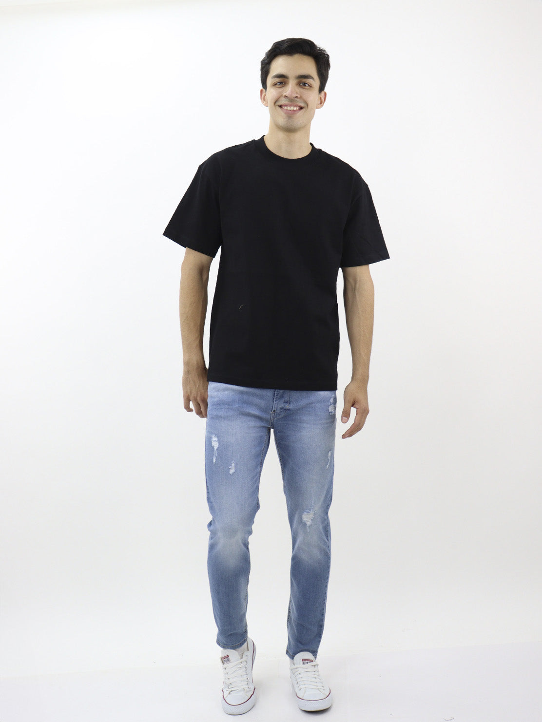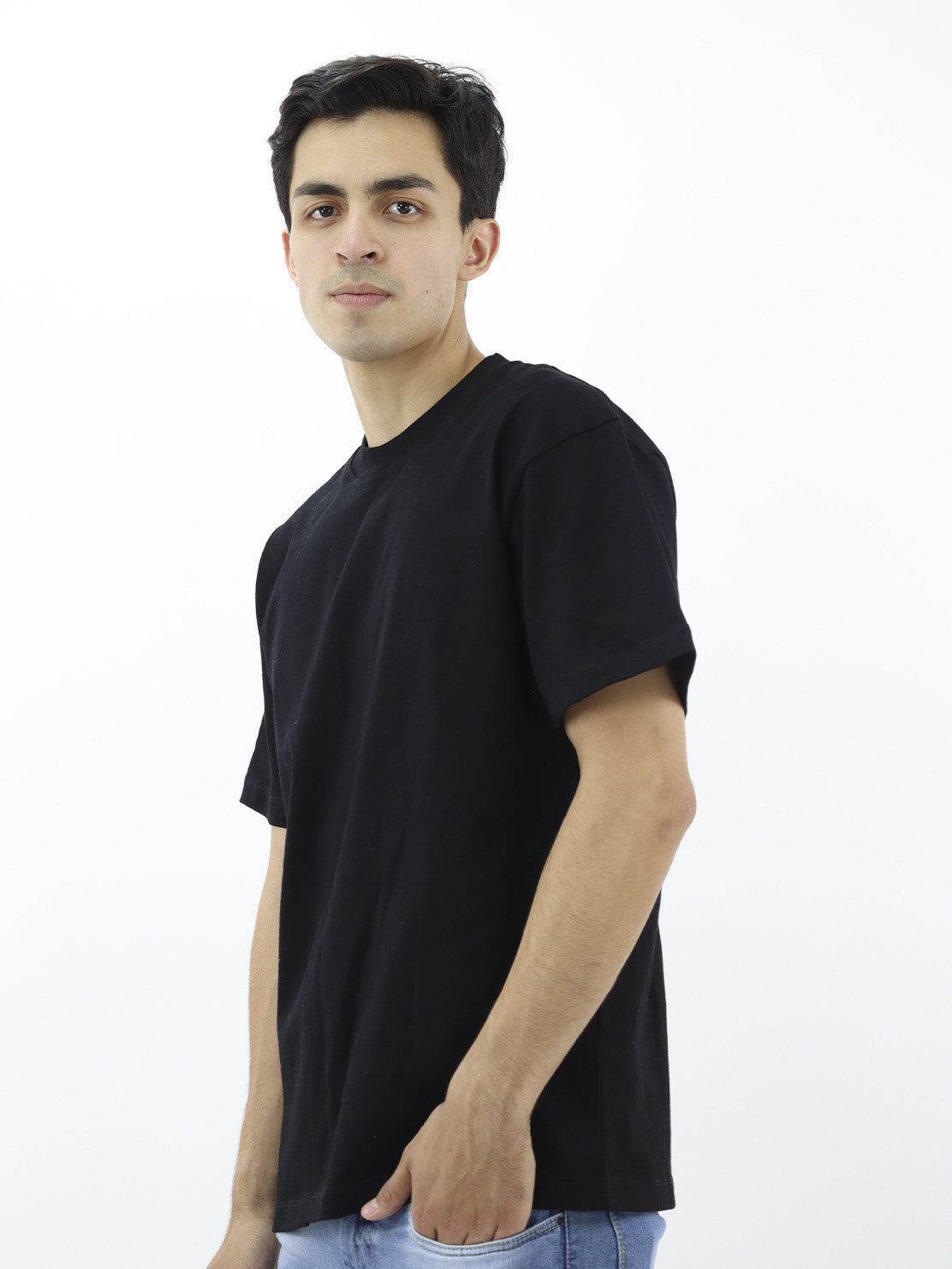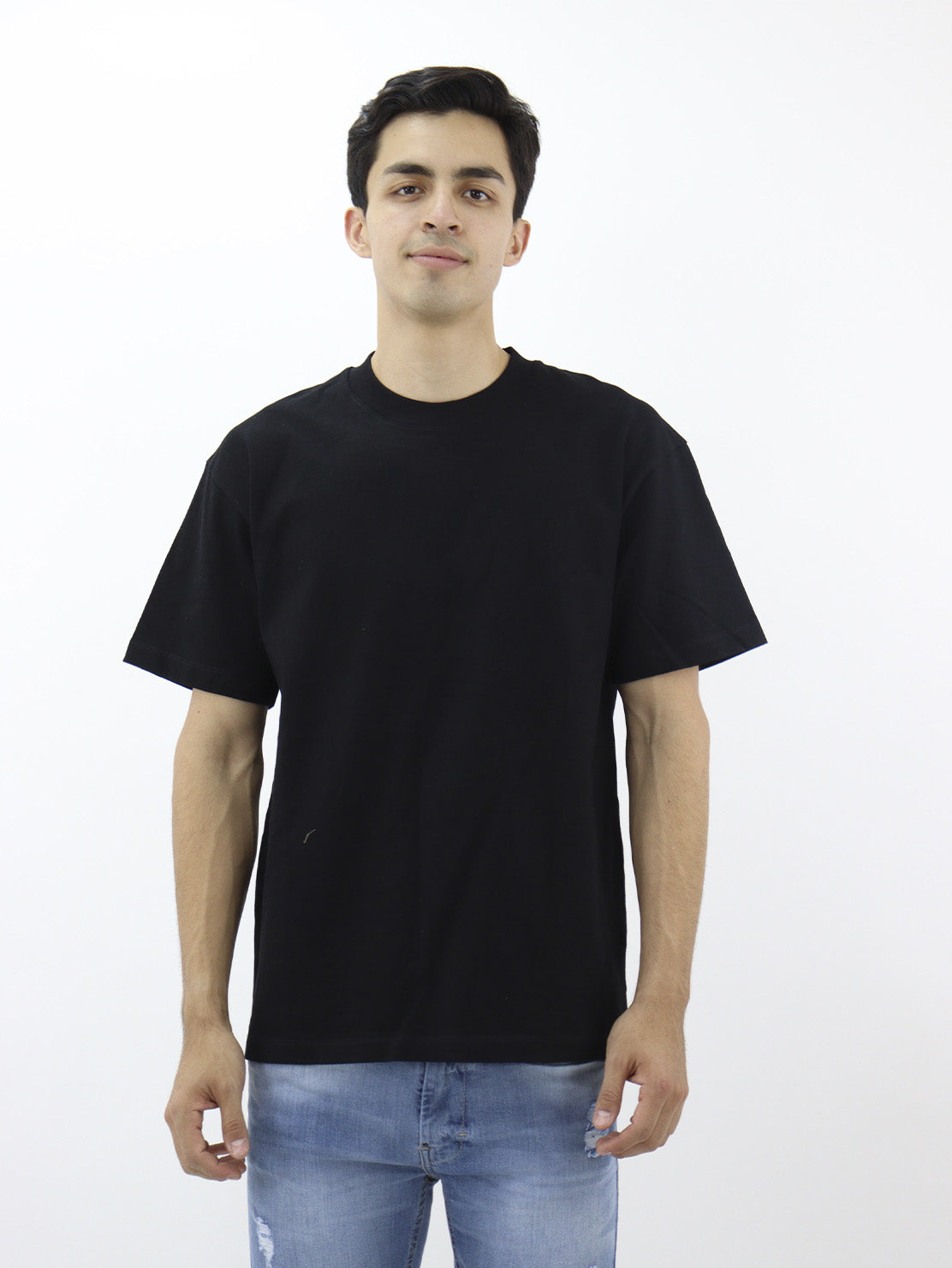 Playera regular fit de color negro, cuello redondo