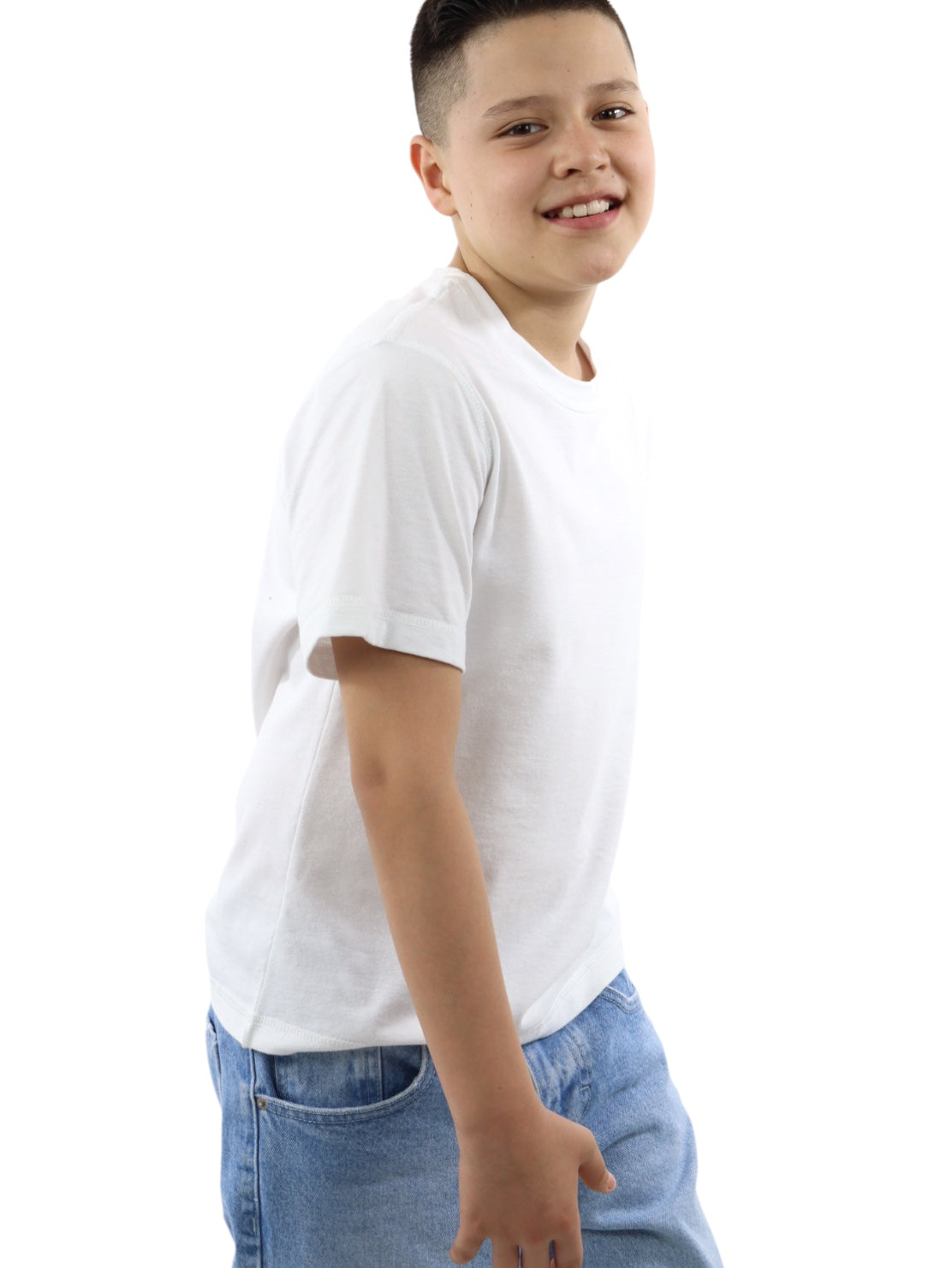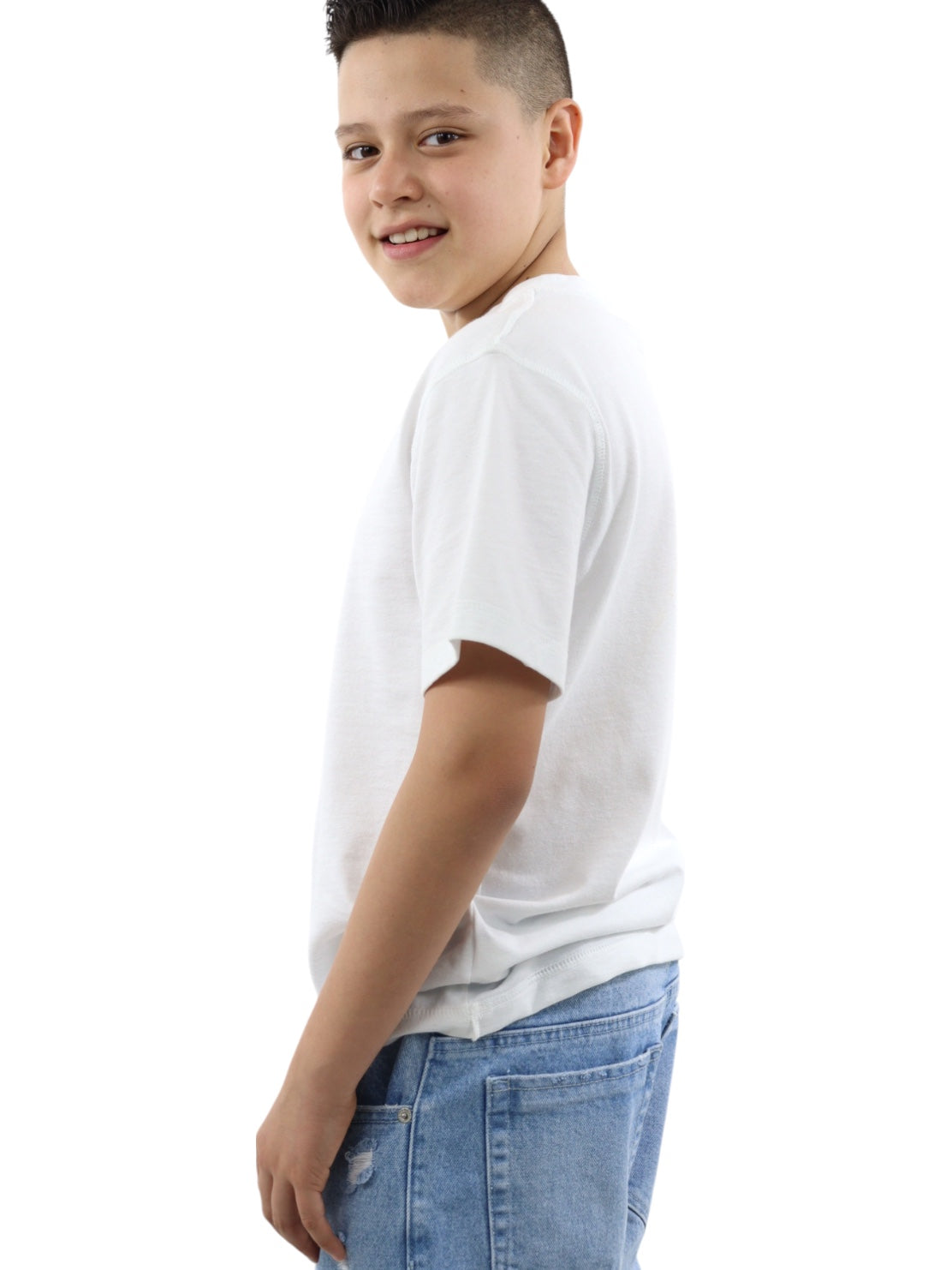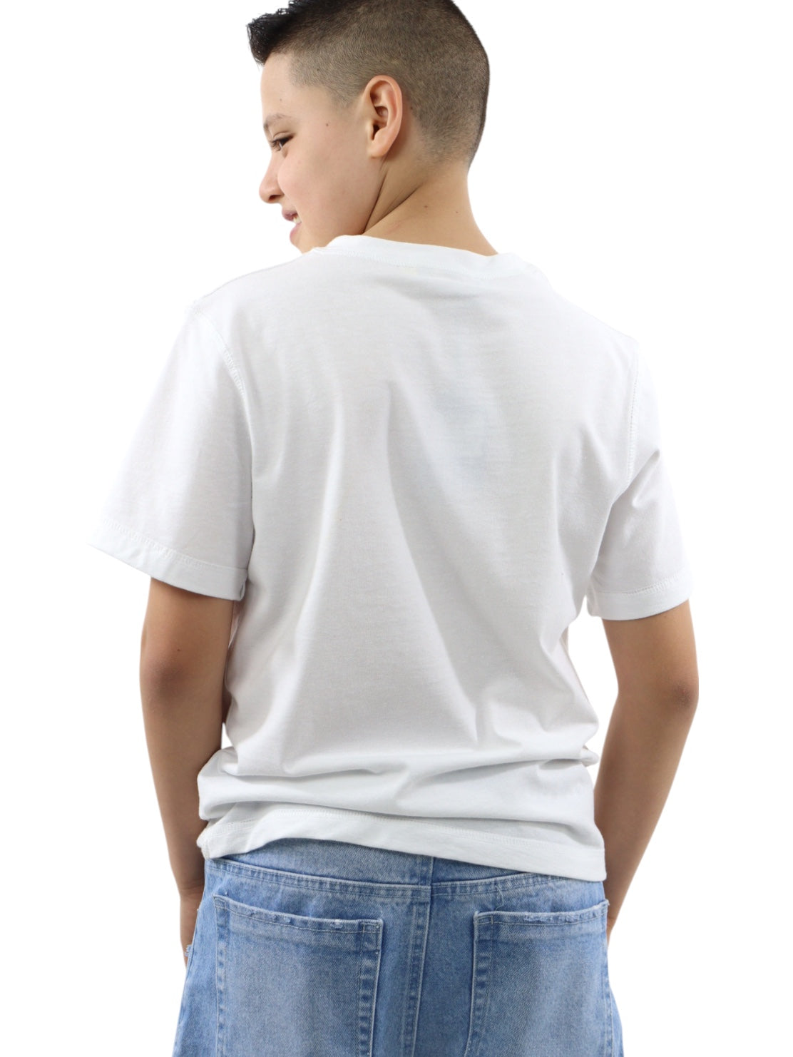 Playera básica de color blanco, cuello redondo