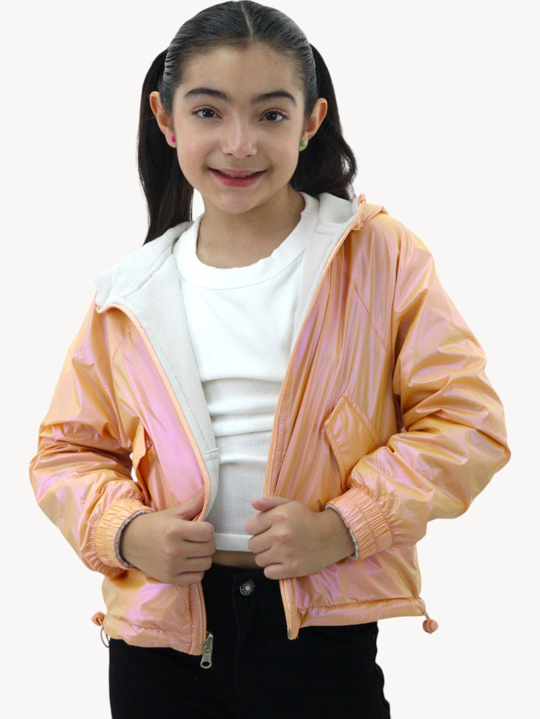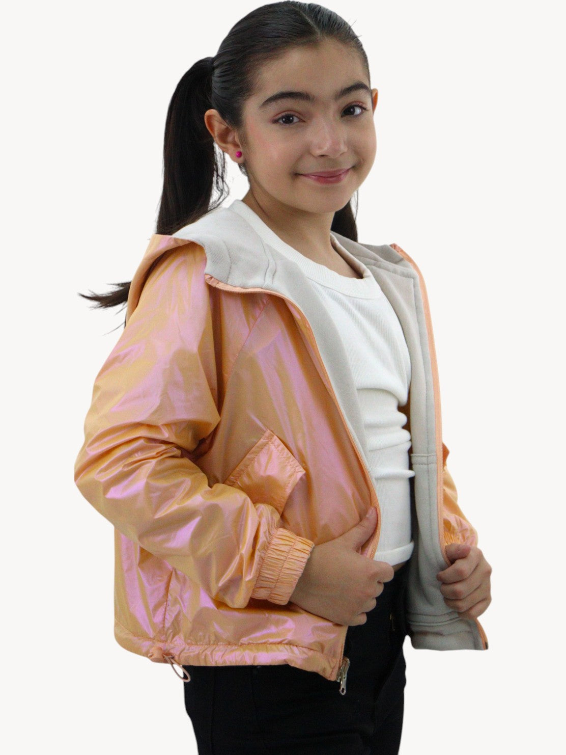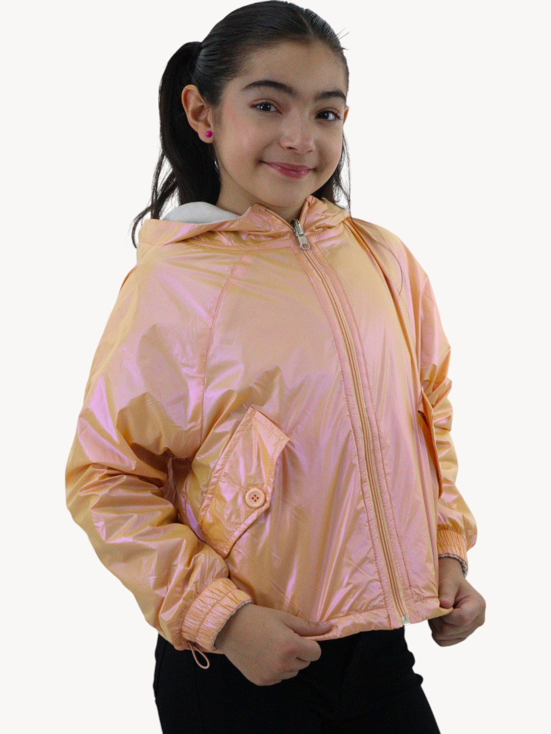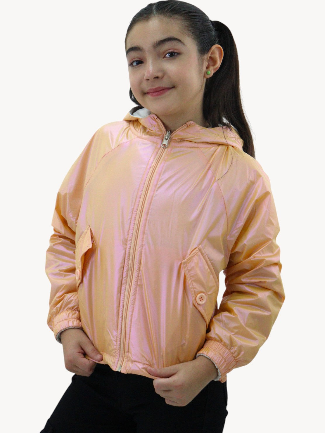 Rompevientos con capucha doble vista naranja/beige