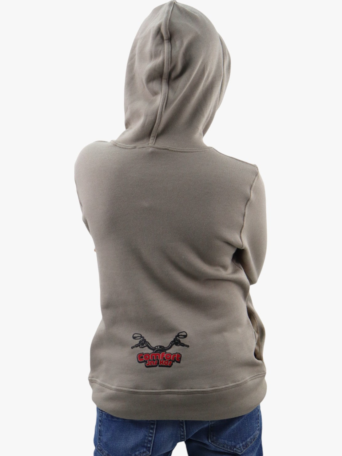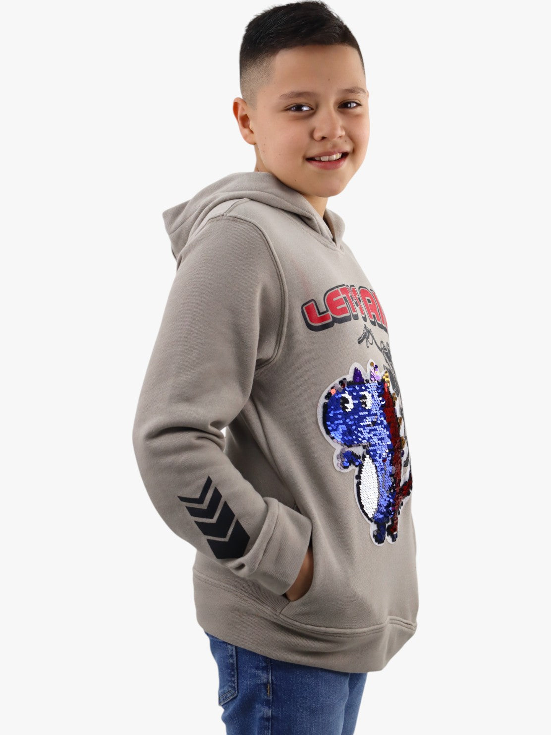 Sudadera con capucha de color beige, con lentejuela reversible de dinosaurio