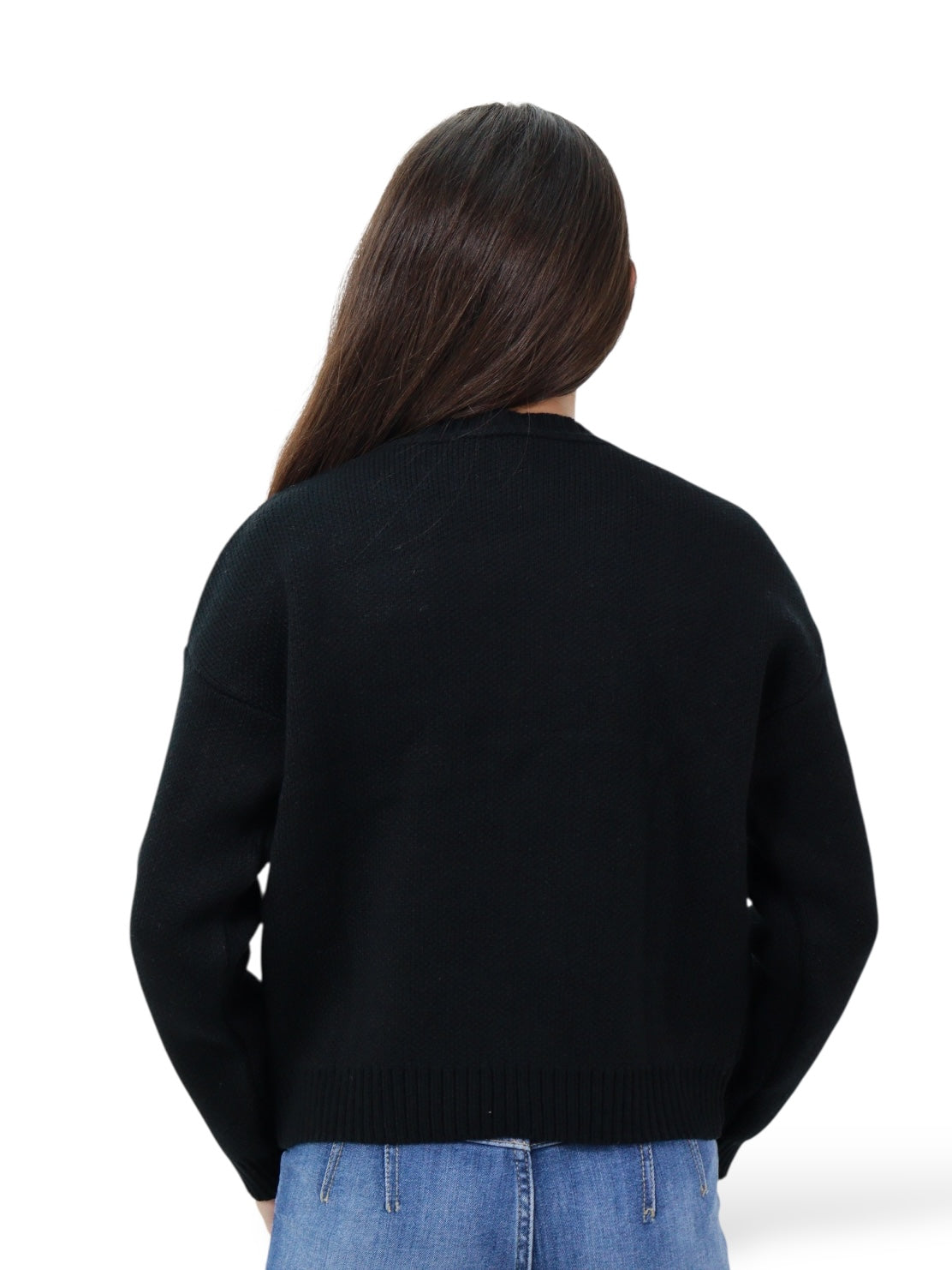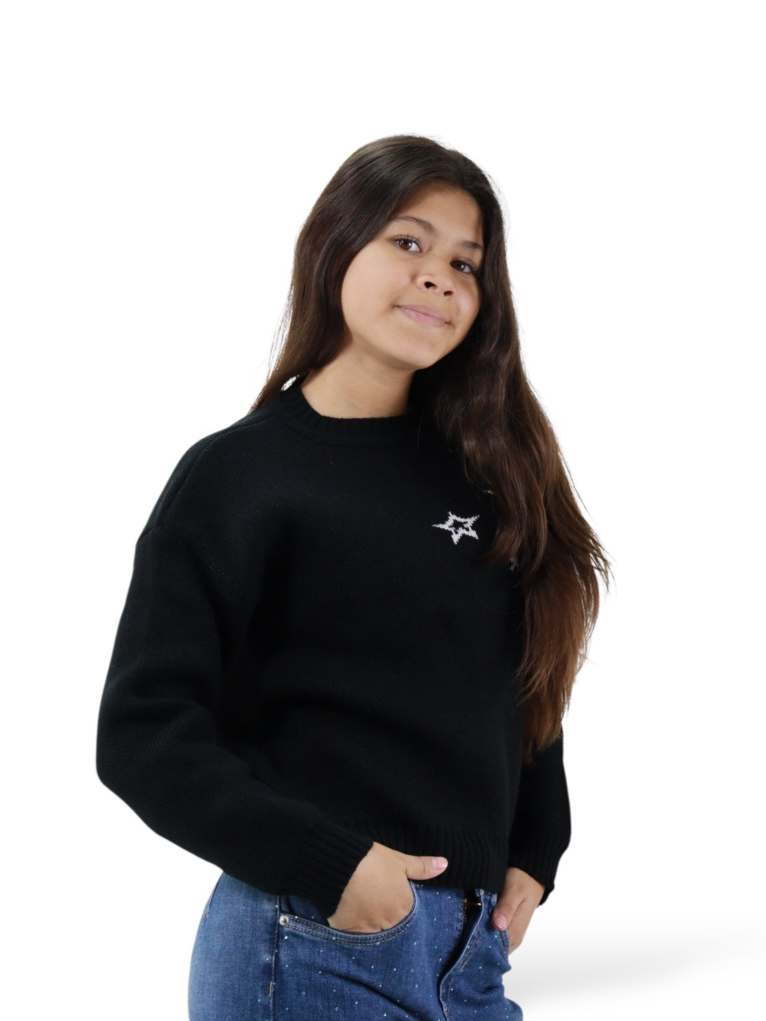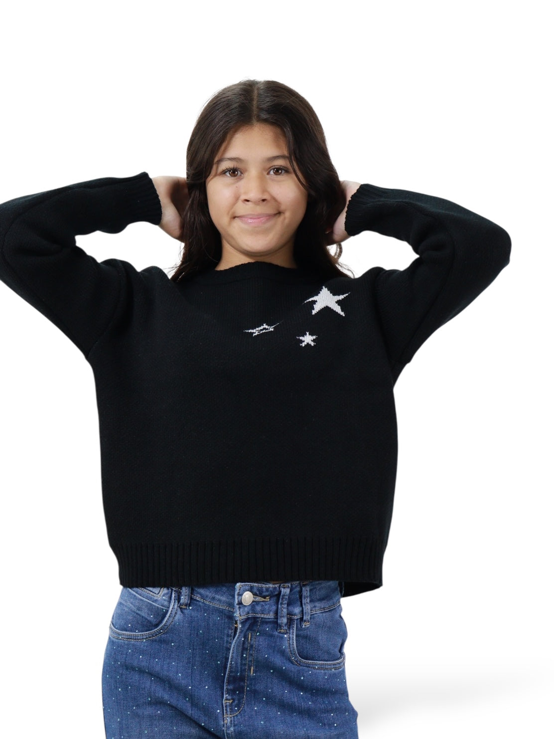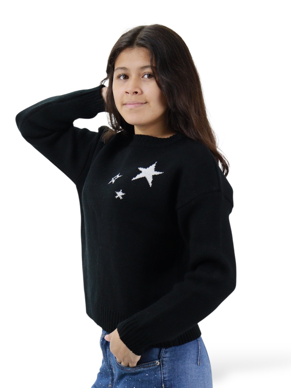 Suéter cerrado de color negro con print stars