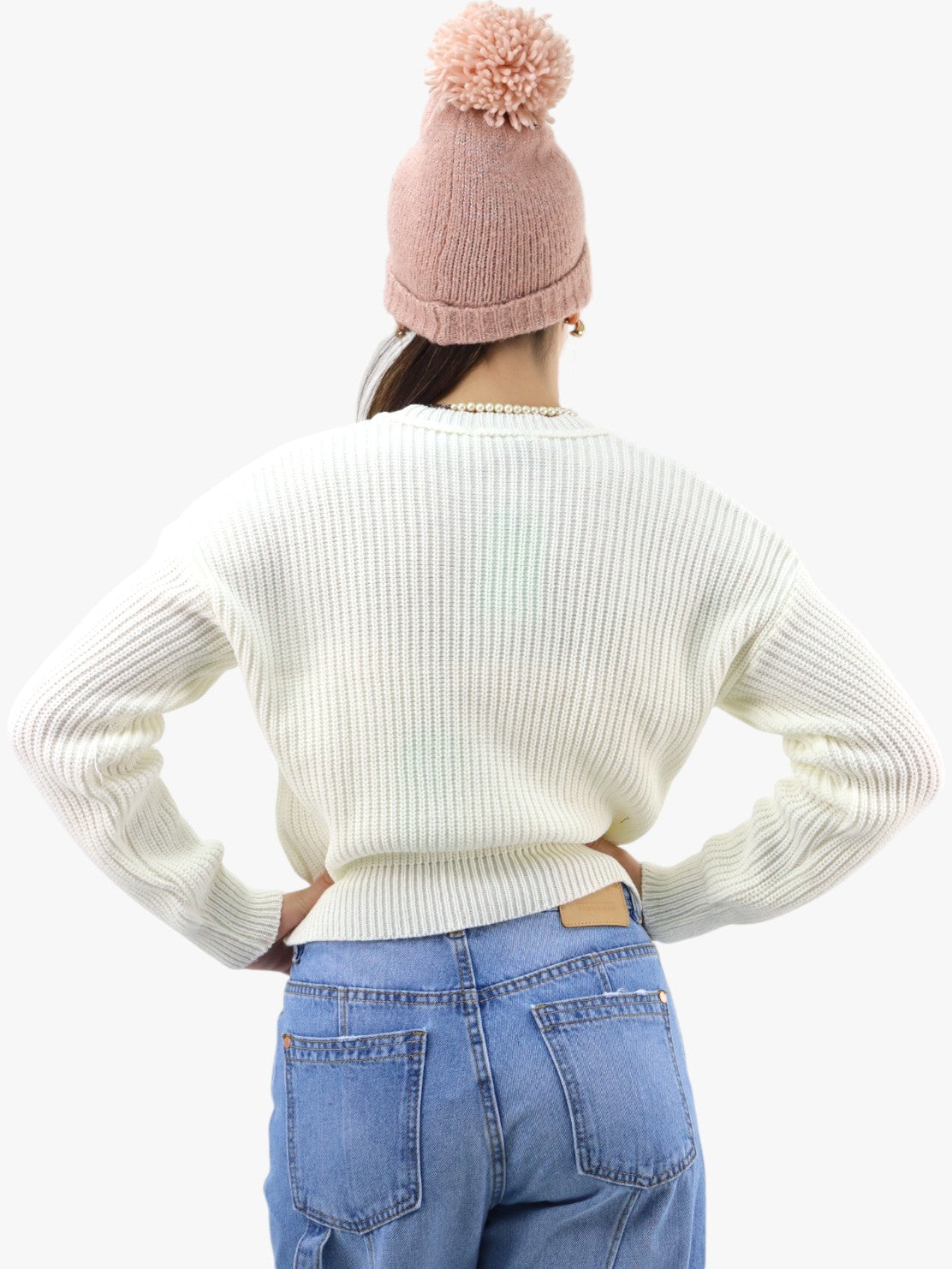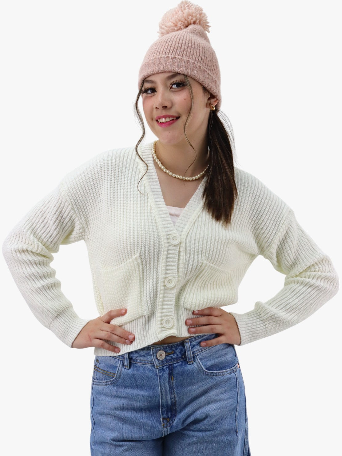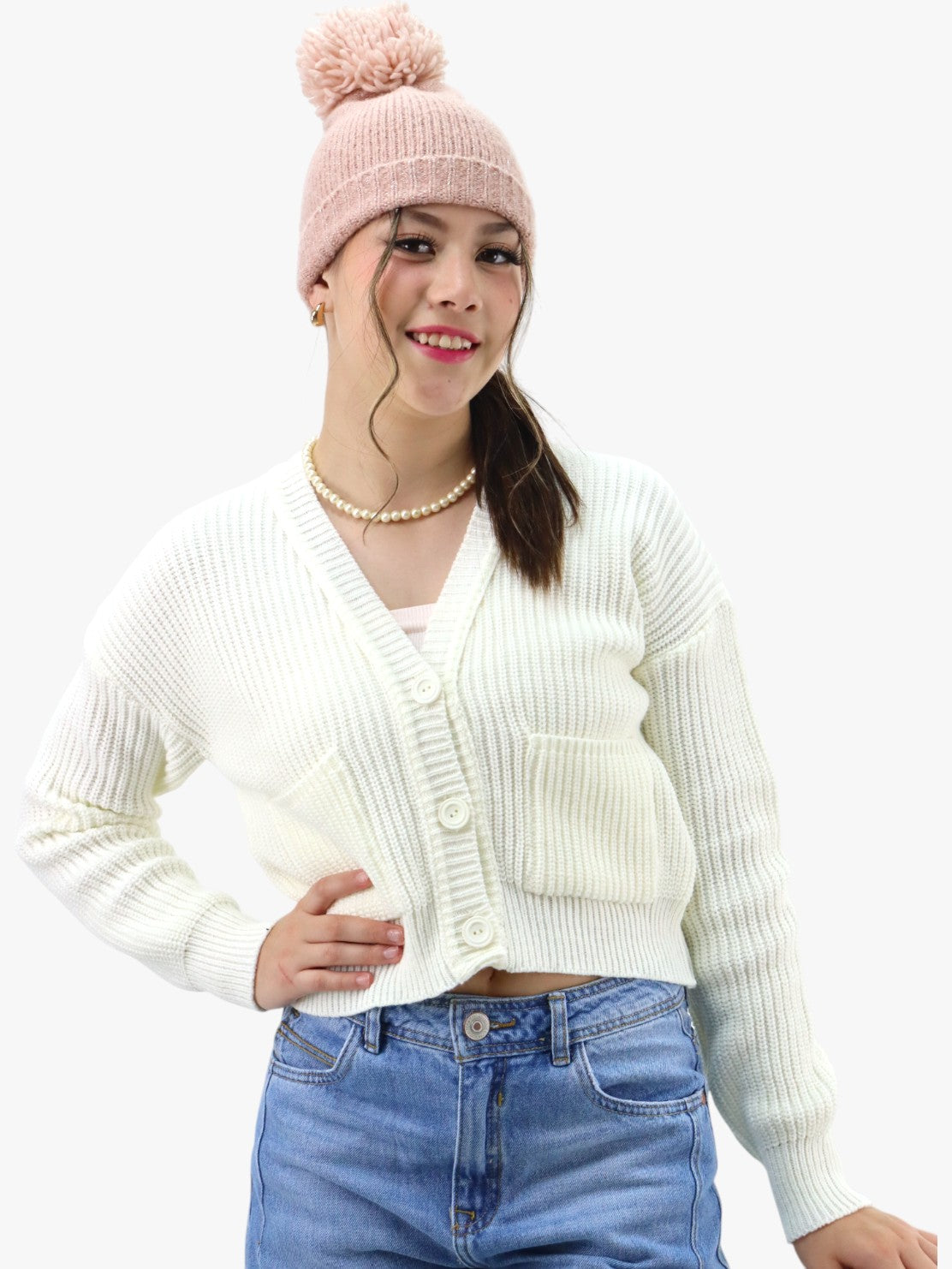 Suéter tejido con botones y bolsillos al frente de color hueso