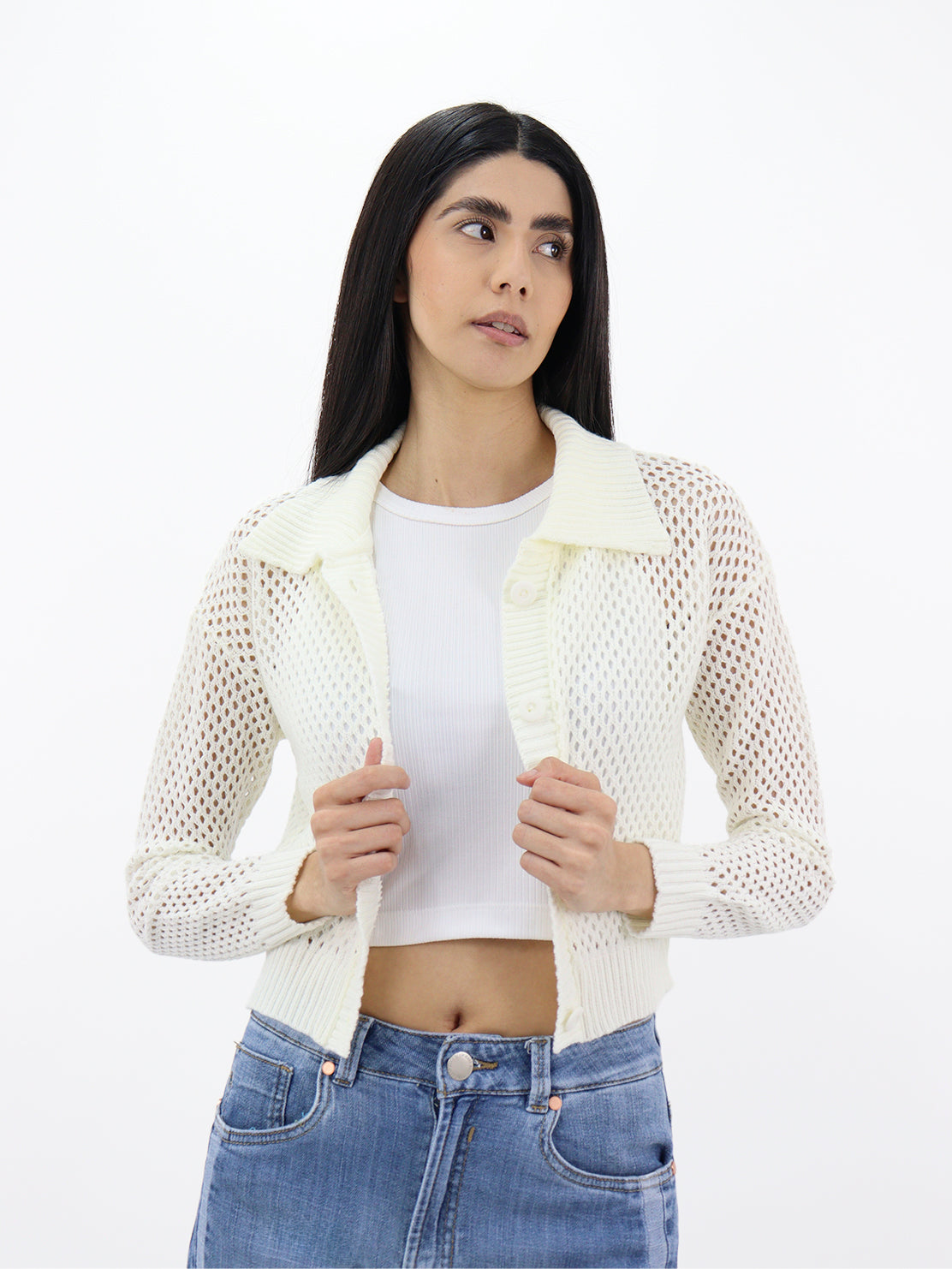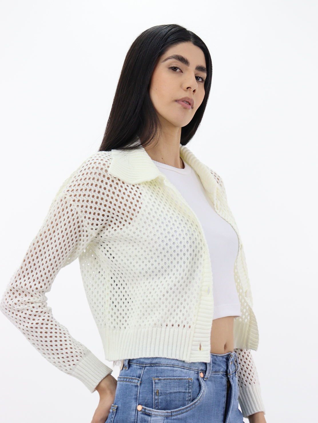 Suéter tejido de color hueso para mujer con botones, uso casual diario