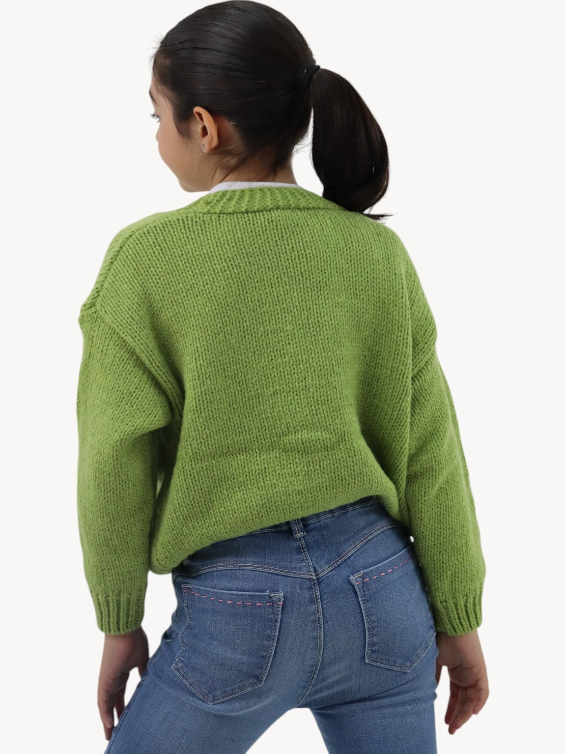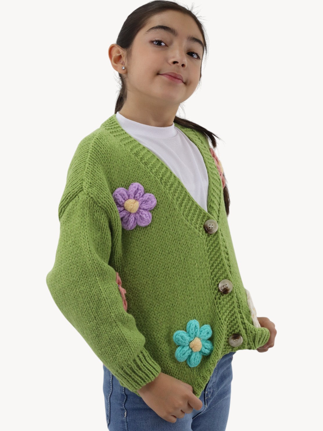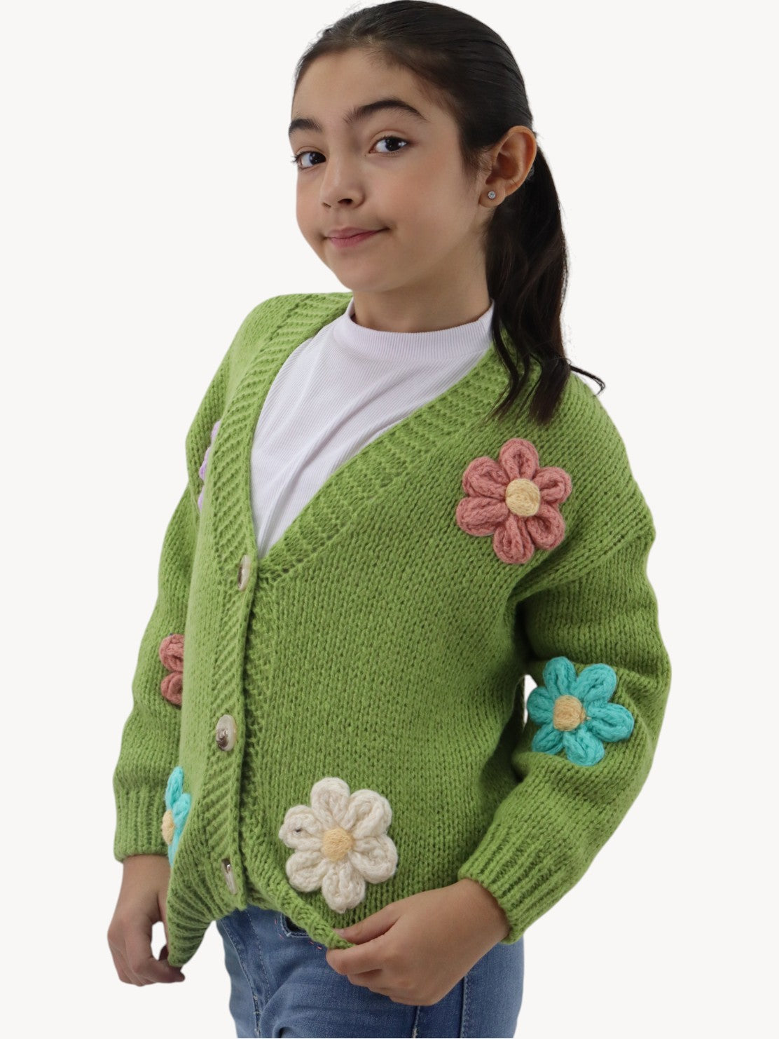 Suéter tejido de color verde con flores